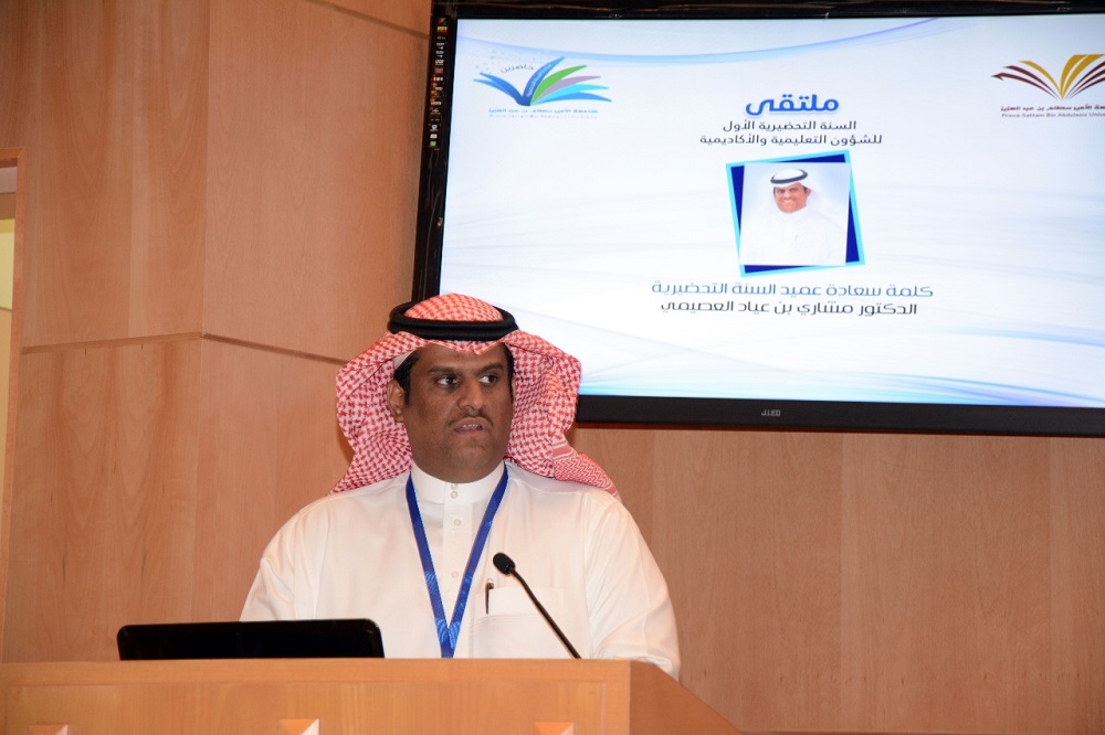 وبدأت فعاليات الملتقى بآيات من الذكر الحكيم، ثم كلمة وجهها سعادة عميد السنة التحضيرية الدكتور مشاري العصيمي مرحبا بها بالحضور ومعرفا بهذا اللقاء الذي حظي بمباركة معالي مدير الجامعة واهتمام ورعاية سعادة وكيل الجامعة للشؤون التعليمية والأكاديمية وذلك للأهداف السامية التي يحملها الملتقى في ثناياه وأهمها تكامل الأدوار بين عمادة السنة التحضيرية وكليات الجامعة والاستفادة من خبرات وتخصصات الزملاء في الكليات لتطوير برامج السنة التحضيرية .