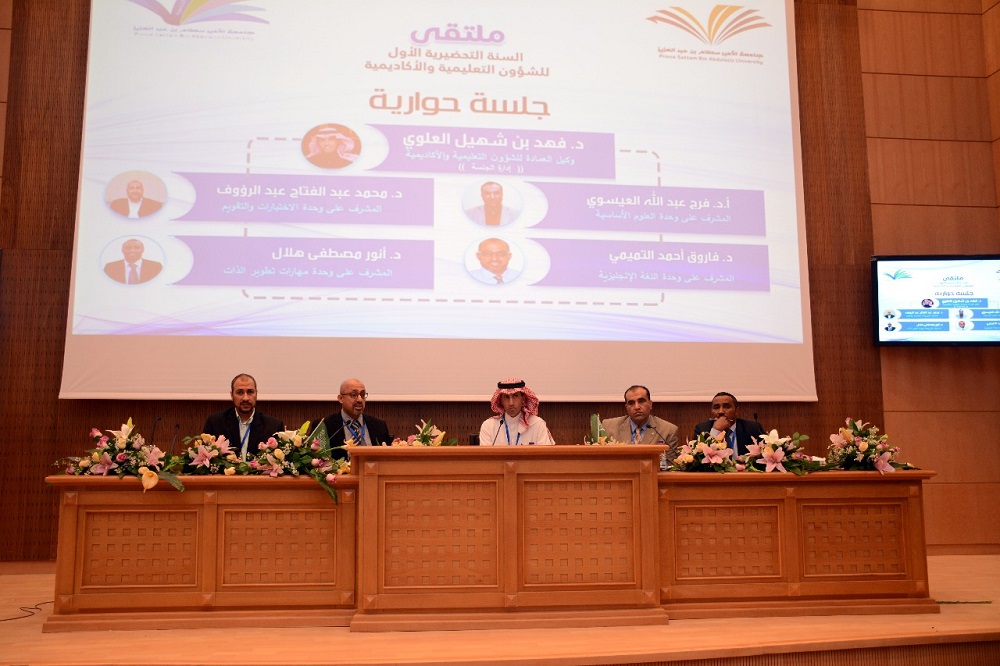 برعاية سعادة وكيل الجامعة للشؤون التعليمية والأكاديمية الدكتور عبد الرحمن بن إبراهيم الخضيري، وبحضور سعادة عميد عمادة السنة التحضيرية الدكتور مشاري بن عياد العصيمي، وبحضور أصحاب السعادة وكلاء الكليات الصحية والعلمية والهندسية للشؤون التعليمية والأكاديمية ورؤساء أقسامها الأكاديمية، عقدت عمادة السنة التحضيرية اليوم الأربعاء: 26/ 6 /1439هـ في مسرح كلية العلوم الطبية التطبيقية ملتقى السنة التحضيرية الأول للشؤون التعليمية والأكاديمية.