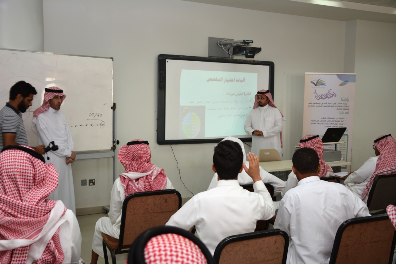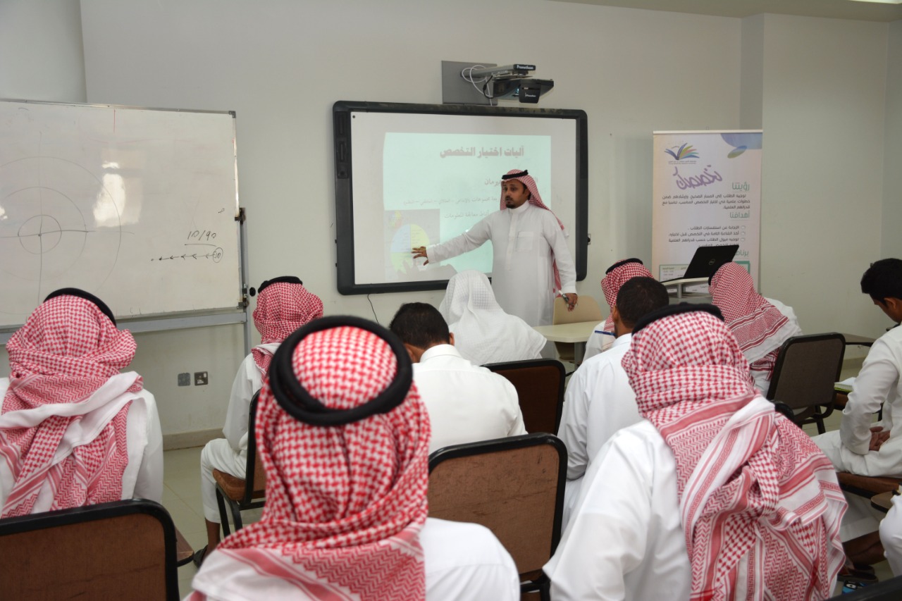 ضمن الفعاليات المصاحبة لبرنامج تخصصك، الذي تقيمه عمادة السنة التحضيرية الذي يهدف إلى نشر ثقافة اختيار التخصص ليتناسب مع ميول وقدرات الطلاب، أُقيمت ورشة عمل للطلاب بعنوان:" اختيار التخصص " قدَمها سعادة عميد كلية ادارة الأعمال الدكتور أحمد بن سهيل عجينة وذلك يوم الثلاثاء :28 /2 /1440هـ .