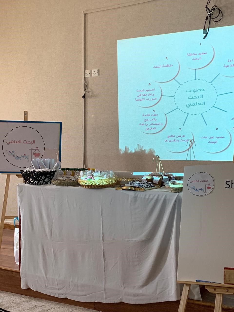 كما تضمنت الفعالية توزيع بروشوراتٍ وتوزيعات على الحضور تحتوي معلومات عن البحث العلمي.