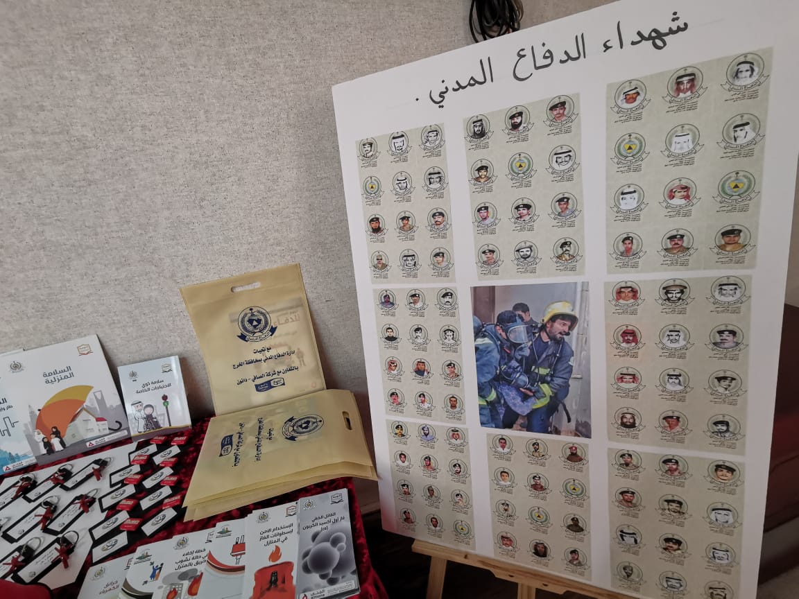 تكريماً و تقديراً للجهود المبذولة من قبل أجهزة الدفاع المدني للحفاظ على أمن وسلامة المجتمع من خطر الكوارث الطبيعية والبشرية والتقليل من الآثار المأساوية الناجمة عنها أقامت الأنشطة الثقافية والاجتماعية في عمادة السنة التحضيرية- قسم الطالبات وبالتعاون مع المديرية العامة للدفاع المدني - معرضاً بمناسبة اليوم العالمي للدفاع المدني، وذلك يوم الخميس الموافق 10-7-1441هـ، بحضور العديد من الطالبات ومنسوبات العمادة. هدف المعرض إلى التنويه والإشادة بالدور الكبير الذي تقوم به أجهزة الدفاع المدني و التذكير بمدى أهمية موضوع مكافحة الكوارث بكافة أنواعها، كما تم تسليط الضوء على الدور الجوهري الذي تقوم به أجهزة الدفاع المدني لحماية المواطنين، تضمن المعرض عرضاً لكافة التجهيزات، والوسائل التي توفر الحماية المدنية للأفراد، من سيارات للإسعاف، ومركبات لإخماد الحرائق المشتعلة، وقوارب لإنقاذ الأشخاص ، وغيرها من الوسائل الأخرى.