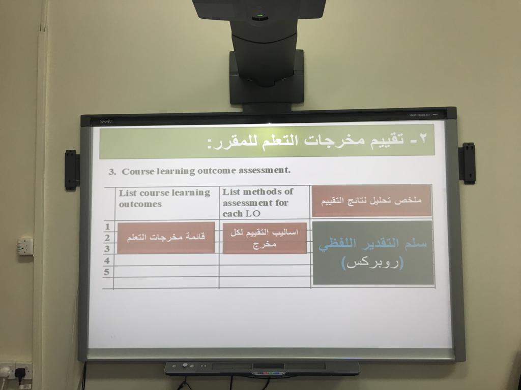 نظمت وحدة التطوير والجودة بعمادة السنة التحضيرية ورشة عمل بعنوان"بناء المقرر الدراسي" قدمتها الدكتورة حنان البحري يوم الأربعاء الموافق1441/1/25هـ ،في تمام الساعة العاشرة صباحاً ،وذلك لتطوير مهارات أعضاء هيئة التدريس وحضرها وكيلات الأقسام وعدد من أعضاء الهيئة التدريسية حيث اشتملت الورشة على شرح مفصل لكيفية كتابة خطة المقرر بناء على الوصف المعتمد، كما وضحت توصيف وتقرير المقرر وكيفية تعبئة نماذج التوصيف والتقرير المعتمد من الهيئة العامة للاعتماد الأكاديمي وبالنهاية شارك الحضور في مناقشة تفاعلية تم من خلالها تبادل التجارب والخبرات ولاقت الورشة تفاعلاً مثمراً.