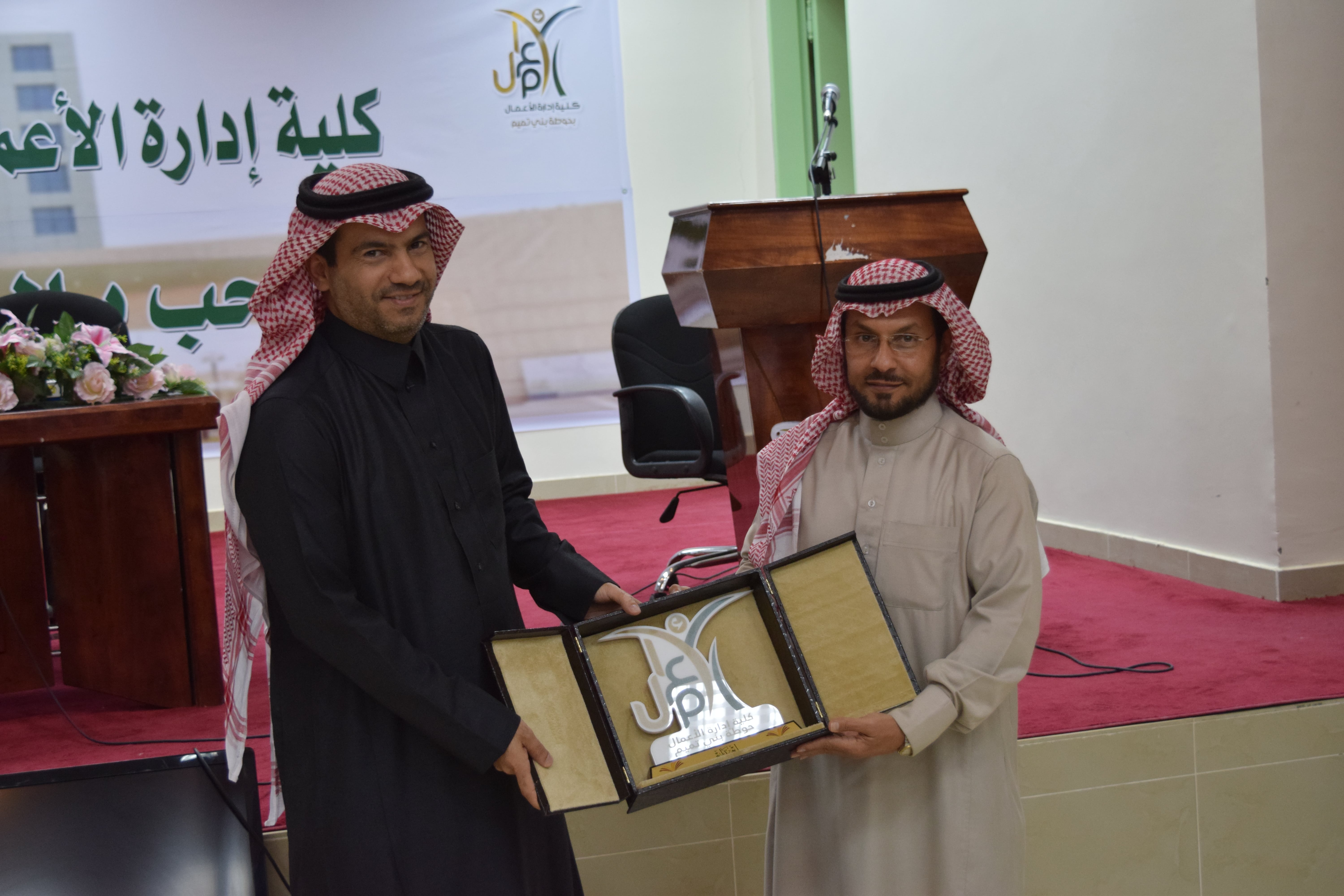 وفي نهاية الزيارة أهدى عميد الكلية الأستاذ الدكتور خالد العتيبي درع كلية إدارة الأعمال الى الدكتور فهد بن سعد السهلي الذي أشاد من جانبه بحسن الاستقبال من قبل عميد الكلية ومنسوبيها.