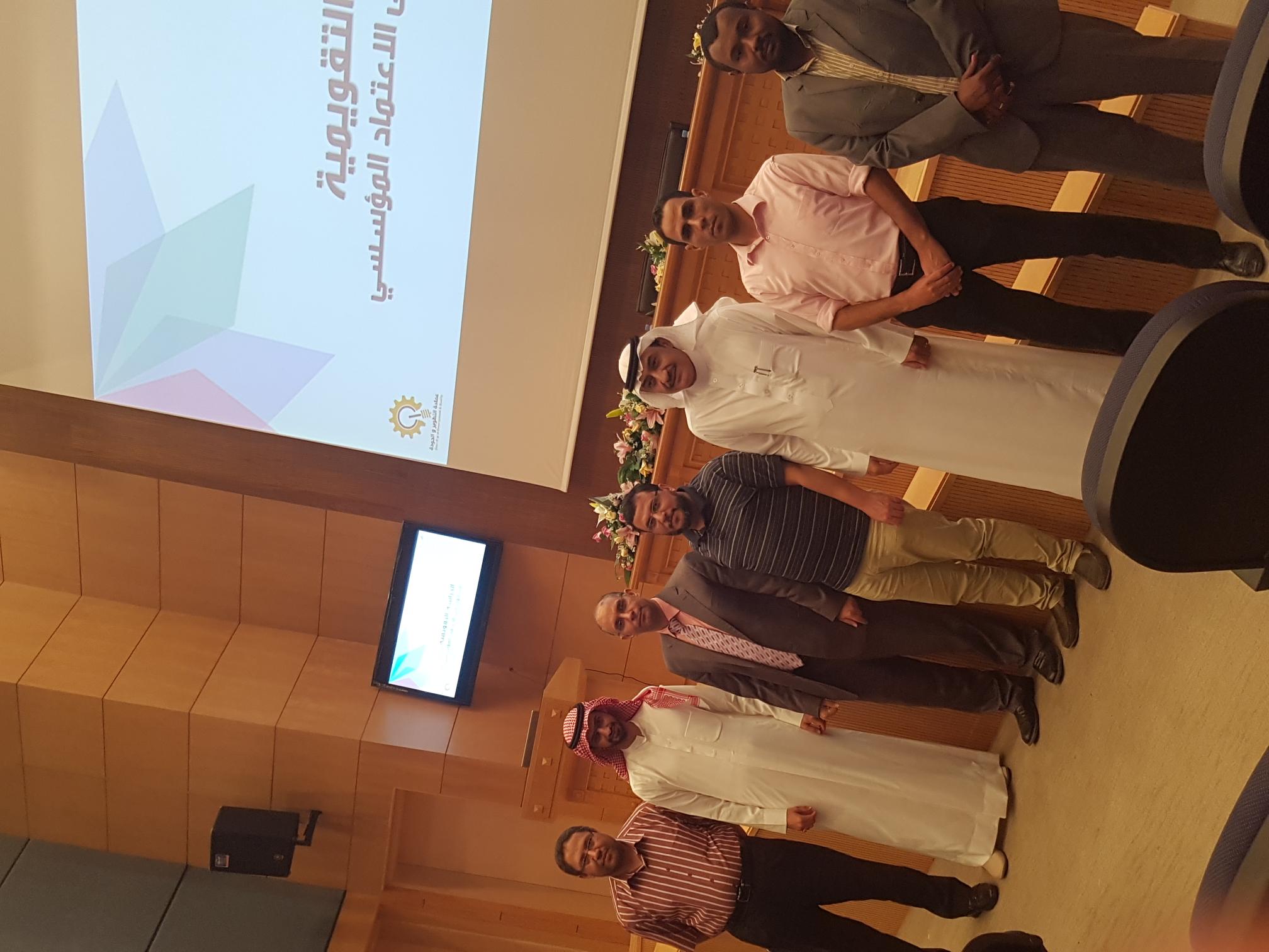 نظمت عمادة التطوير والجودة ورشة عمل بعنوان " الدراسة التقويمية للحصول على الاعتماد المؤسسي " لمنسوبي عدد من كليات الجامعة كجزء من خطة العمادة لتوعية وتهيئة منسوبي الجامعة عن متطلبات وكيفية عمل الدراسة التقويمية للحصول على الاعتماد المؤسسي من المركز الوطني للتقويم والاعتماد الاكاديمي. وقد قدمت الورشة في عدة ايام وفي اماكن مختلفة ممايتيح الفرصة لاعضاء هيئة التدريس لحضورها. وقد تم تقسيم الورشة الى ستة محاور رئيسية , حيث هدف المحور الأول إلى تعريف عضو هيئة التدريس بنظام ضمان الجودة بالجامعة , وتناول المحور الثاني تعريف الحاضرين بمتطلبات الحصول على الاعتماد الأكاديمي , وكما سلط الضوء المحور الثالث على أهمية حصول الجامعة على الاعتماد الأكاديمي , وتم مناقشة أهداف الاعتماد الأكاديمي في المحور الرابع , وقد ركز المحور الخامس من الورشة على أهم الانجازات التي حققتها جامعة الأمير سطام بن عبدالعزيز في طريق حصولها على الاعتماد المؤسسي من المركز الوطني للتقويم والاعتماد الاكاديمي , وقد هدف المحور الاخير للورشة إلى توعية أعضاء هيئة التدريس بأهمية دورهم ومساهماتهم في تحقيق الاعتماد المؤسسي. وتتمنى عمادة التطوير والجودة ان تسهم هذه الورشة في إكساب أعضاء هيئة التدريس مجموعة من المعارف المرتبطة بالاعتماد المؤسسي وإبراز دور أعضاء هيئة التدريس في تحقيق الاعتماد المؤسسي في القريب العاجل باذن الله.