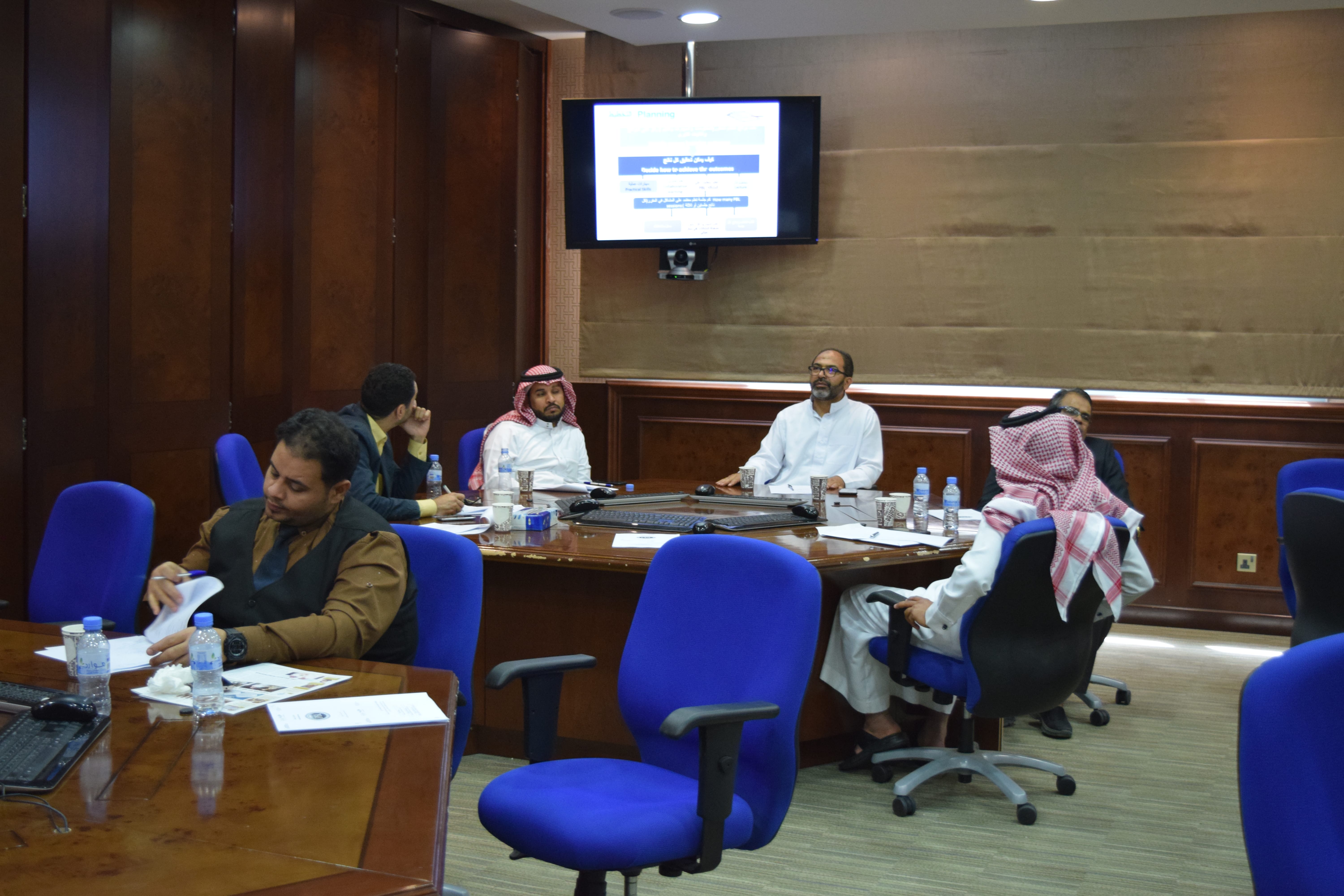 تنفيذاً لخطة عمادة التطوير والجودة للتحسين المستمر في الأداء ورفع مهارات أعضاء هيئة التدريس على مستوى الجامعة ، نظمت عمادة التطوير والجودة ورشة عمل بعنوان " التعلم القائم على المشكلات " للشطرين الرجالي والنسائي بقاعة كبار الشخصيات VIP بمبنى إدارة الجامعة للرجال وقاعة مبنى الهداية للنساء . قدمت الورشة بالاشتراك من قبل الدكتورة نجلاء علي مصطفى , والدكتور عيد ابوعز , والدكتورة سناء كمال محرم. بدأت فعاليات الورشة في تمام الساعة التاسعة صباحا بحضور (35) عضو هيئة تدريس من الشطرين. وقد تم تقسيم الورشة الى جلستين , وقد هدفت الجلسة الأولى الى تعريف عضو هيئة التدريس بمقدمة عامة عن استراتيجيات التعلم القائم على المشكلات , ومفهومه , وملامح استراتيجية التعلم القائم على المشكلات , وخصائص استراتيجية التعلم القائم على المشكلات , والفرق بين استراتيجيتي التلعم المعتمد على المشكلات وحل المشكلات , ومراحل وخطوات استراتيجية التعلم القائم على المشكلات , والتخطيط لذلك. بينما هدفت الجلسة الثانية إلى إكساب المتدربين بكيفية تصميم المشكلات للطلاب , والبدء بمرحلة التنفيذ , وكيفية تحديد أدوار كل من المعلم والطالب فيها , وكيفية إعداد وتقديم المشكلة , ومرحلة التقويم , ومن ثم مناقشة تقويم المشكلة. وفي الختام تتمنى عمادة التطوير والجودة ان تسهم هذه الورشة في إكساب المشاركين مجموعة من المعارف والمهارات والاتجاهات الإيجابية اللازمة التي تقوم عليها استراتيجية التعلم القائم على المشكلات , وكيفية تطبيق هذه الاستراتيجيات في تدريس المقرر.