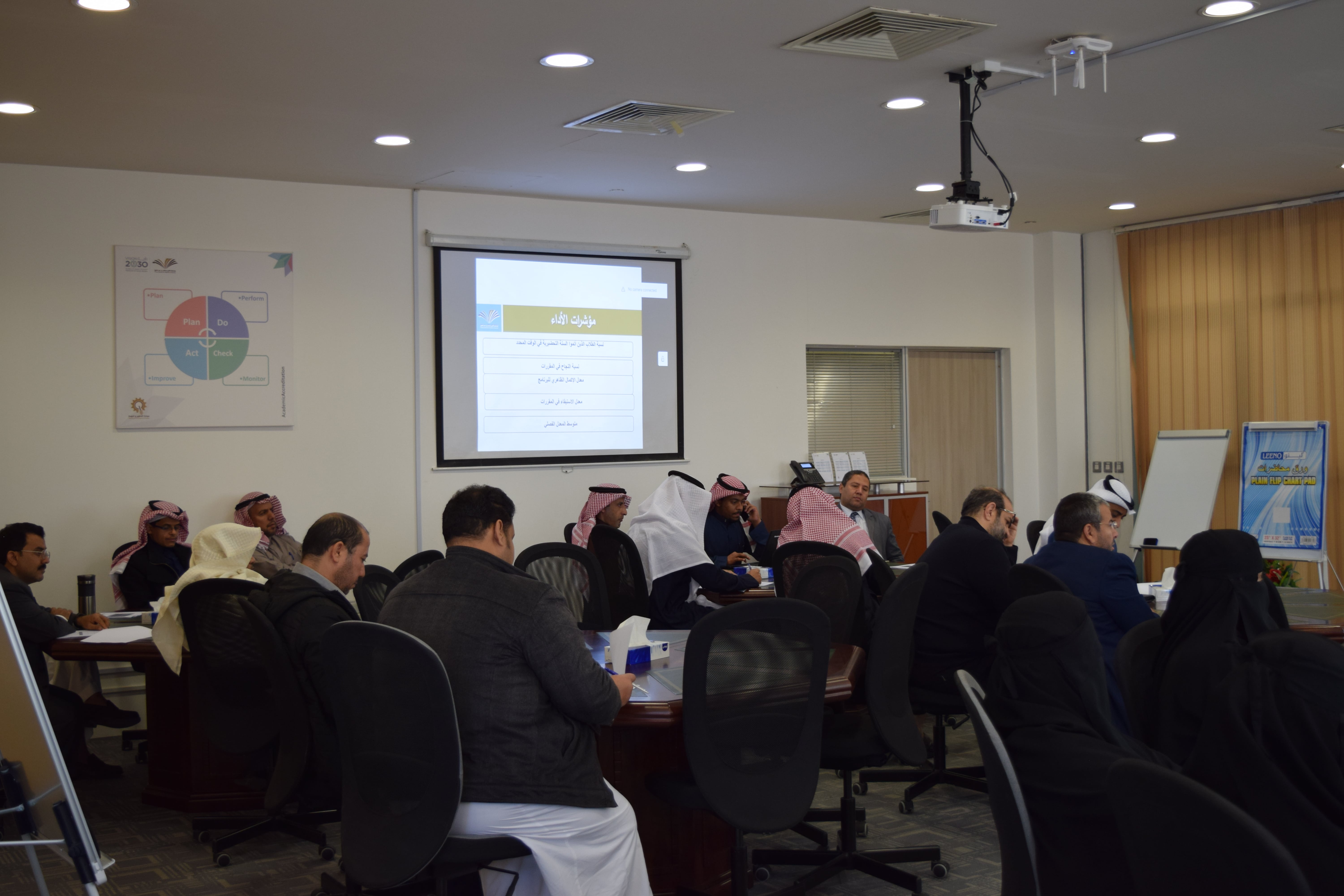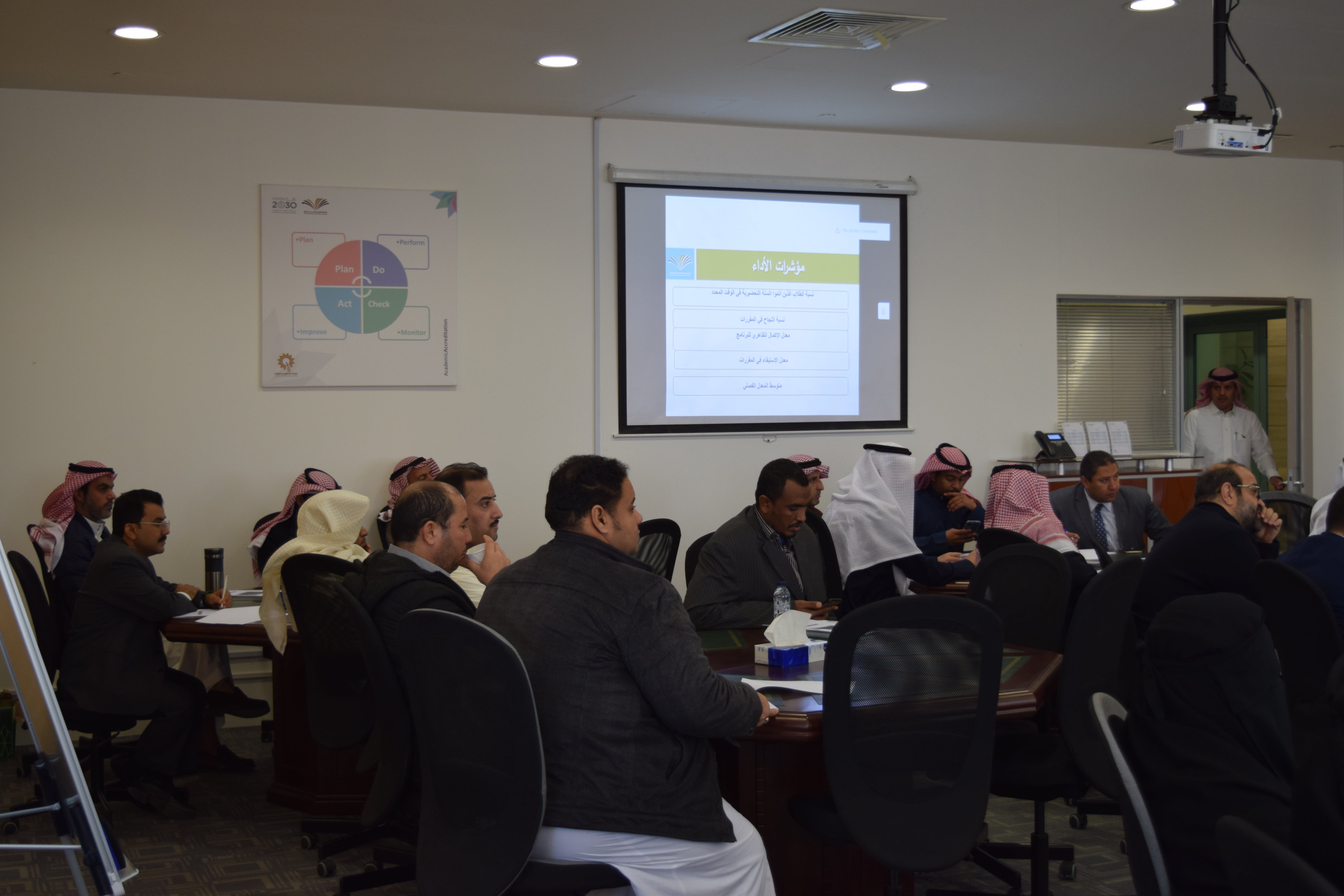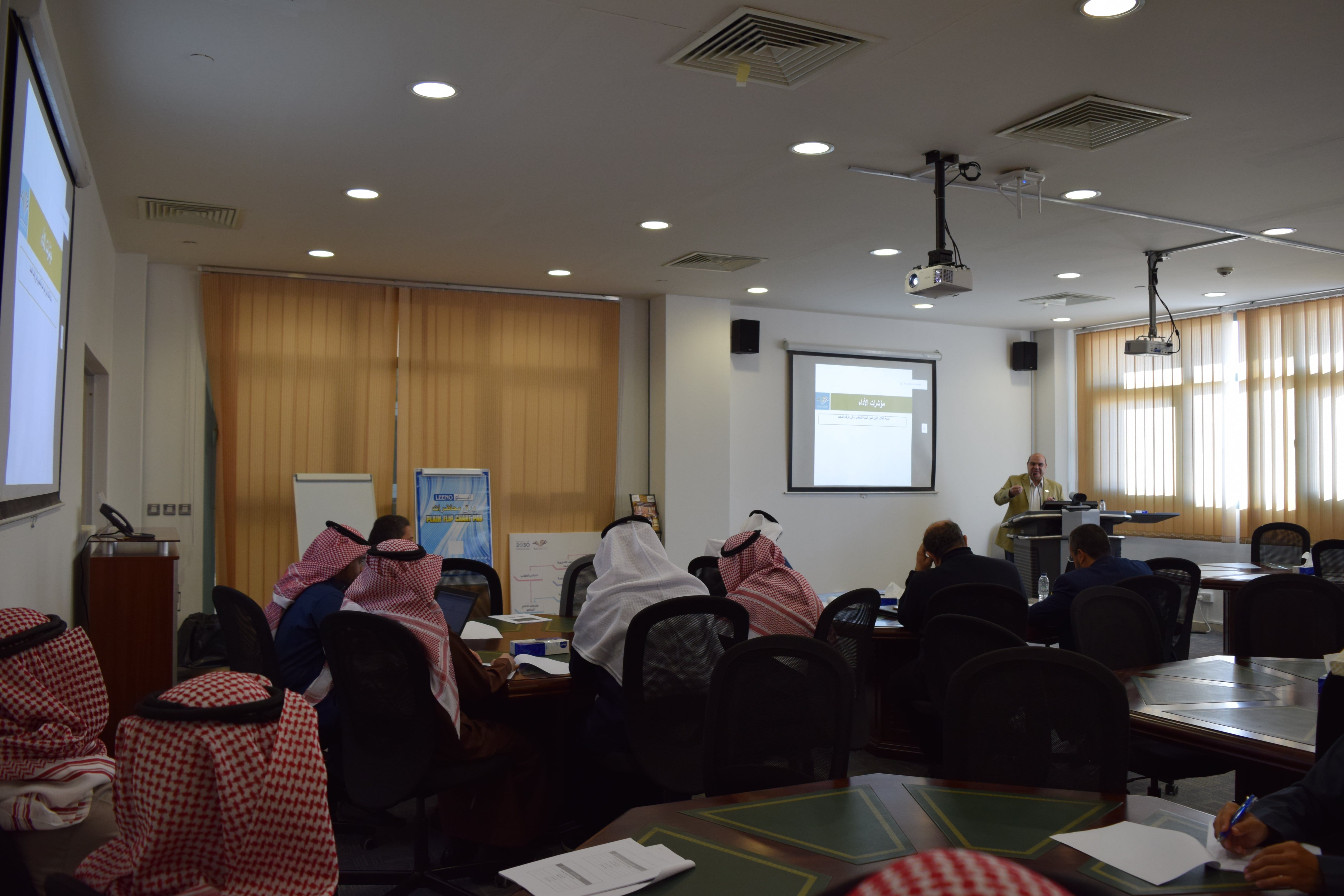 نظمت عمادة التطوير والجودة ورشة عمل بعنوان " مؤشرات الأداء والارشاد الفعال لدعم العملية التعليمية " وذلك يوم الأربعاء 18/6/1441 هـ الموافق 12/2/2020م في قاعة التدريب بعمادة التطوير والجودة ، والتي قدمها سعادة الدكتور / أيمن كامل الصواف مستشار وكالة الجامعة للشؤون التعليمية والأكاديمية, والذي استعرض فيها مؤشرات الأداء المرتبطة بالعملية التعليمية , ومفهوم وأهداف وأركان الإرشاد الأكاديمي والجدول الدراسي وآلية حساب المعدل الفصلي والتراكمي للطالب، كما تناول أيضا عددا من القضايا الأكاديمية التي تهم الطالب الجامعي مثل : العبء الدراسي ، والمعدل الفصلي ، والمعدل الأكاديمي ، والاختبارات البديلة والحرمان ، والإعتذاروالتأجيل ، والفصل الأكاديمي وضوابطه , مؤكداً على ضرورة تحقيق الطالب التوازن بين حقوقه التي يتمتع بها وواجباته نحو الجامعة ، وفي نهاية الورشة أجاب سعادته على أسئلة واستفسارات أعضاء هيئة التدريس .