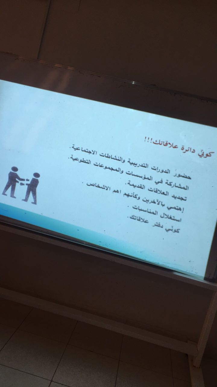 كان الهدف العام من الدورة تزويد المتدربات بالمهارات اللازمة لتحقيق النجاح وكذلك مساعدتهن على التعرف على نقاط القوة لديهن وصقل مهاراتهن وتحديد أهدافهن لتمكينهن من مهارة التسويق الشخصي.