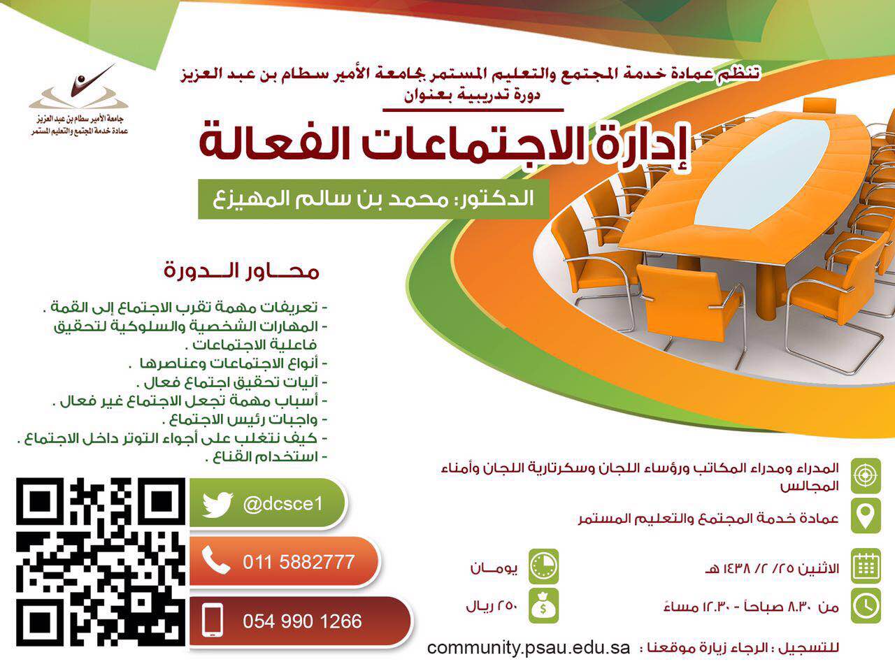بعنوان “ إدارة الاجتماعات الفعالة “ .