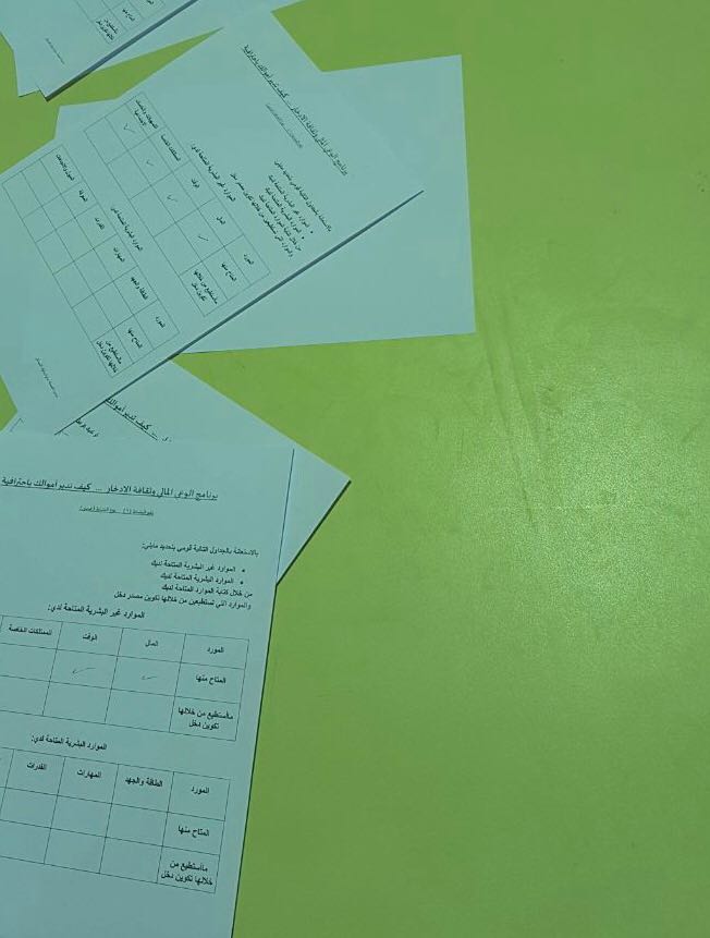 تناولت المدربة مجموعة من المحاور من أهمها: الدخل، والاستهلاك، والتخطيط المالي، والميزانية الشخصية، والتوفير والقروض.