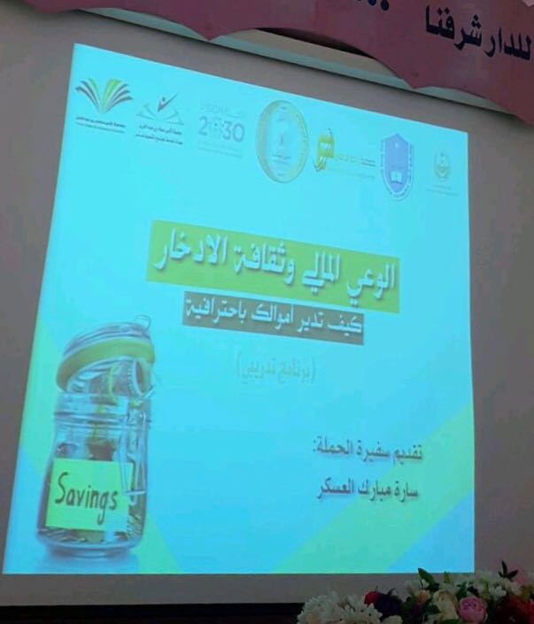 تواصل عمادة خدمة المجتمع والتعليم المستمر جهودها في نشر الوعي وثقافة الادخار بين فئات المجتمع المختلفة داخل الجامعة وخارجها حيث أقامت عمادة خدمة المجتمع والتعليم المستمر بالتعاون مع المركز الثقافي النسائي بإسكان الصناعات العسكرية بالخرج مساء يوم الأربعاء الموافق 19-6-1439هـ دورة تدريبية بعنوان (الوعي المالي وثقافة الادخار) قدمتها إحدى سفيرات حملة التوفير والادخار الأستاذة: سارة بنت مبارك العسكر.
