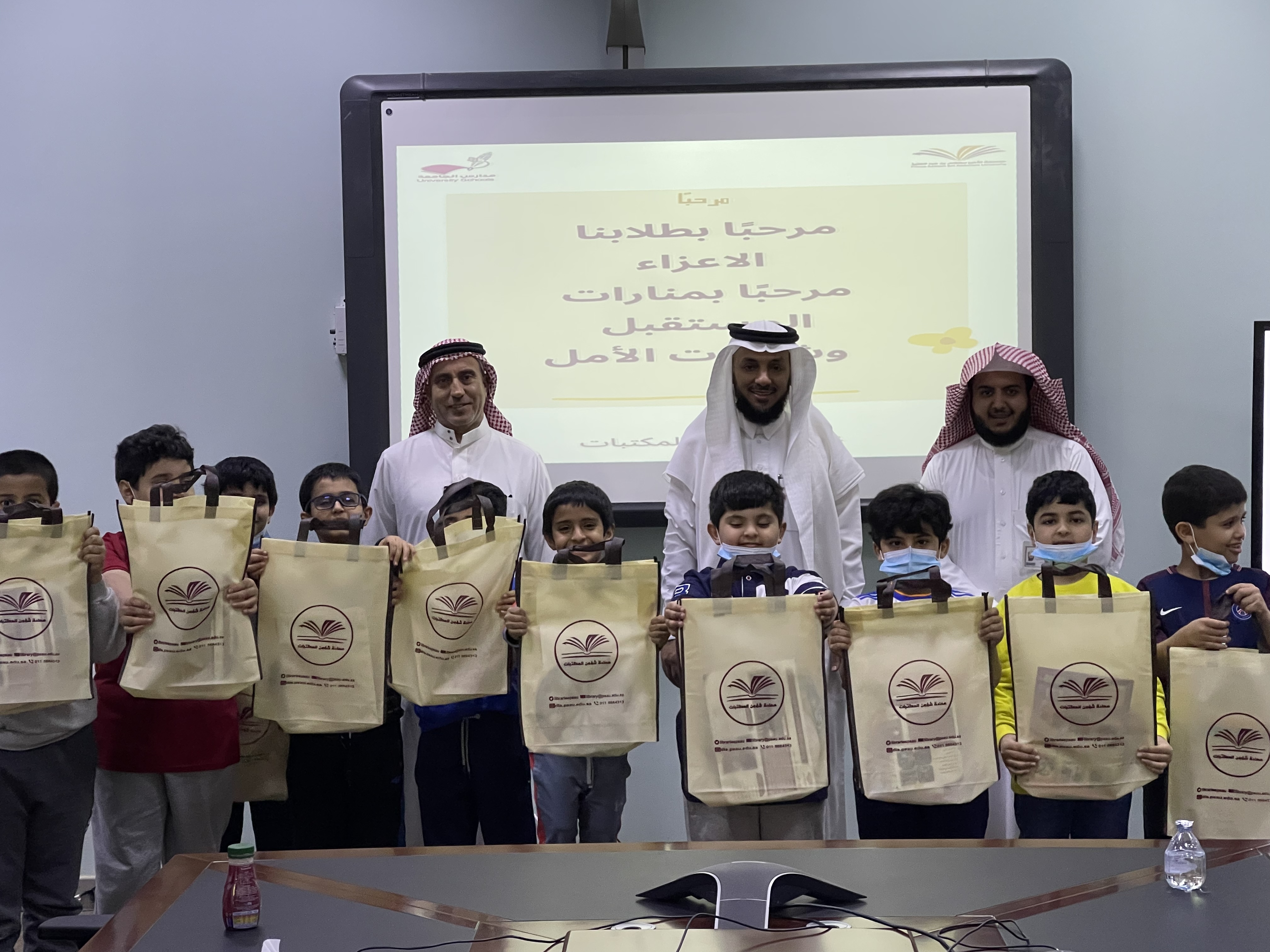 استقبلت عمادة شؤون المكتبات وفدًا من طلاب مدارس الجامعة الابتدائية ،