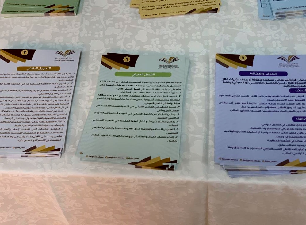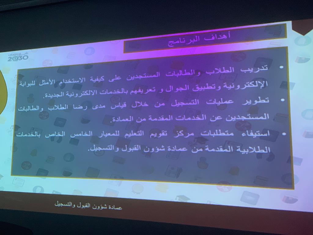 حرصًا على حقوق الطالبة الجامعية وتوعيتها، وتحت قيادة عميدة كلية العلوم والدراسات الإنسانية د. حصة بنت سعود الهزاني أقامت وحدة القبول والتسجيل بجامعة الأمير سطام بن عبد العزيز لقاء تعريفيًا للطالبات المستجدات في صبيحة يوم الأحد الموافق: 7\2\1441هـ الساعة العاشرة في مسرح الكلية، من تقديم أ. هدى الجليفي لتنْويه عن أهمية البطاقة الجامعية، وتحمل المسؤولية كاملة عن أي حركة أكاديمية تقوم بها على صفحتها الإلكترونية في حال ضياع البطاقة الجامعية، كما نبهت على الحركات الأكاديمية المتاحة على صفحة الطالبة من تأجيل واعتذار وطي قيد، وأهمية عدم الاعتذار عن مقرر في المستوى الصفري ( المستوى الأول) والعواقب المتبعة لها من حذف مقرر متزامن إلا بحذف المقررين معا، وكذلك التنبيه على أن تكون الساعات في حدود العبء الدراسي إلا للضرورة القصوى. وقدم اللقاء مفهوما عن القضايا الطلابية وكيفية تعامل الطالبة مع حقوقها نظاميا، كما بيَّن مفهوم الزيارة وأنواعها ونسبتها، والفرق بين الزيارة الداخلية والخارجية، وعرّج اللقاء على مفهوم التحويل الداخلي والخارجي، وكذلك نسبة الحرمان حسب ساعات المقرر، ثم وُضّح مفهوم الفصل الأكاديمي وأسبابه وكيفية التعامل معه، وبعد ذلك وُضحت طريقة احتساب المعدل. وأُشير في نهاية اللقاء إلى أهمية استخدام الخدمات على الهاتف الذكي، ووجود وسائل للتواصل مع العمادة . ختم اللقاء بشكر الجميع على الحضور متمنين لهن التوفيق ، إضافة إلى توزيع منشورات دليل الطالبة على الحاضرات.