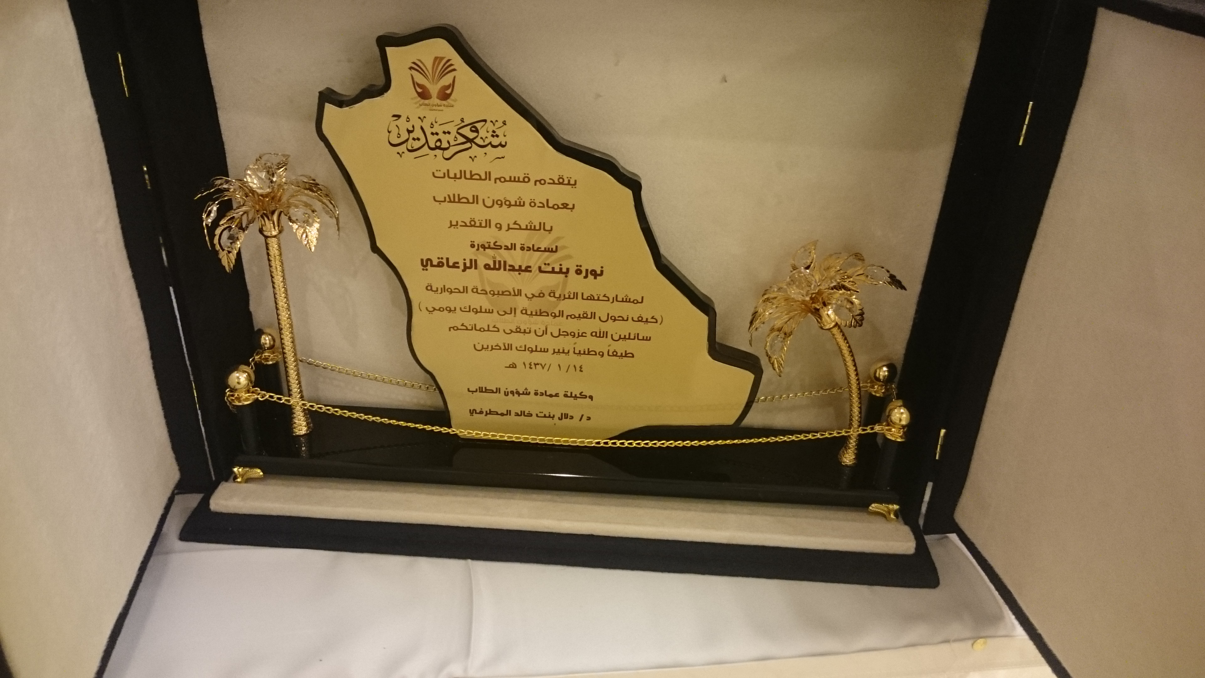 برعاية شرفية من معالي مدير جامعة الأمير سطام بن عبد العزيز ومشاركة فكرية من معاليه عبر كلمة افتتاحية مسجلة صوتاً وصورة ، أقام قسم الطالبات بعمادة شؤون الطلاب صباح الثلاثاء ١٤-١-١٤٣٧ في فندق شمسة أصبوحة حوارية بعنوان : (كيف نحول القيم الوطنية لسلوك يومي )