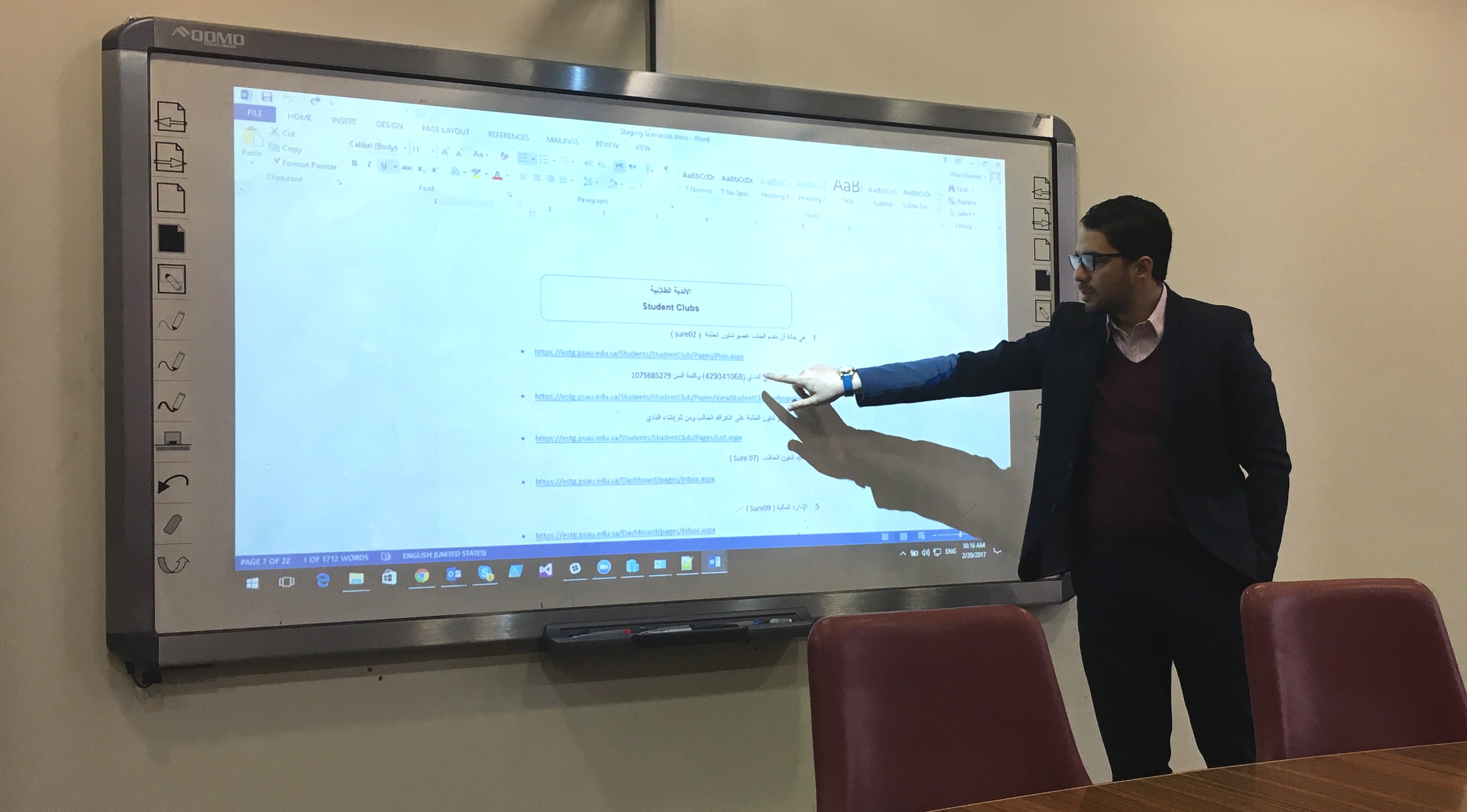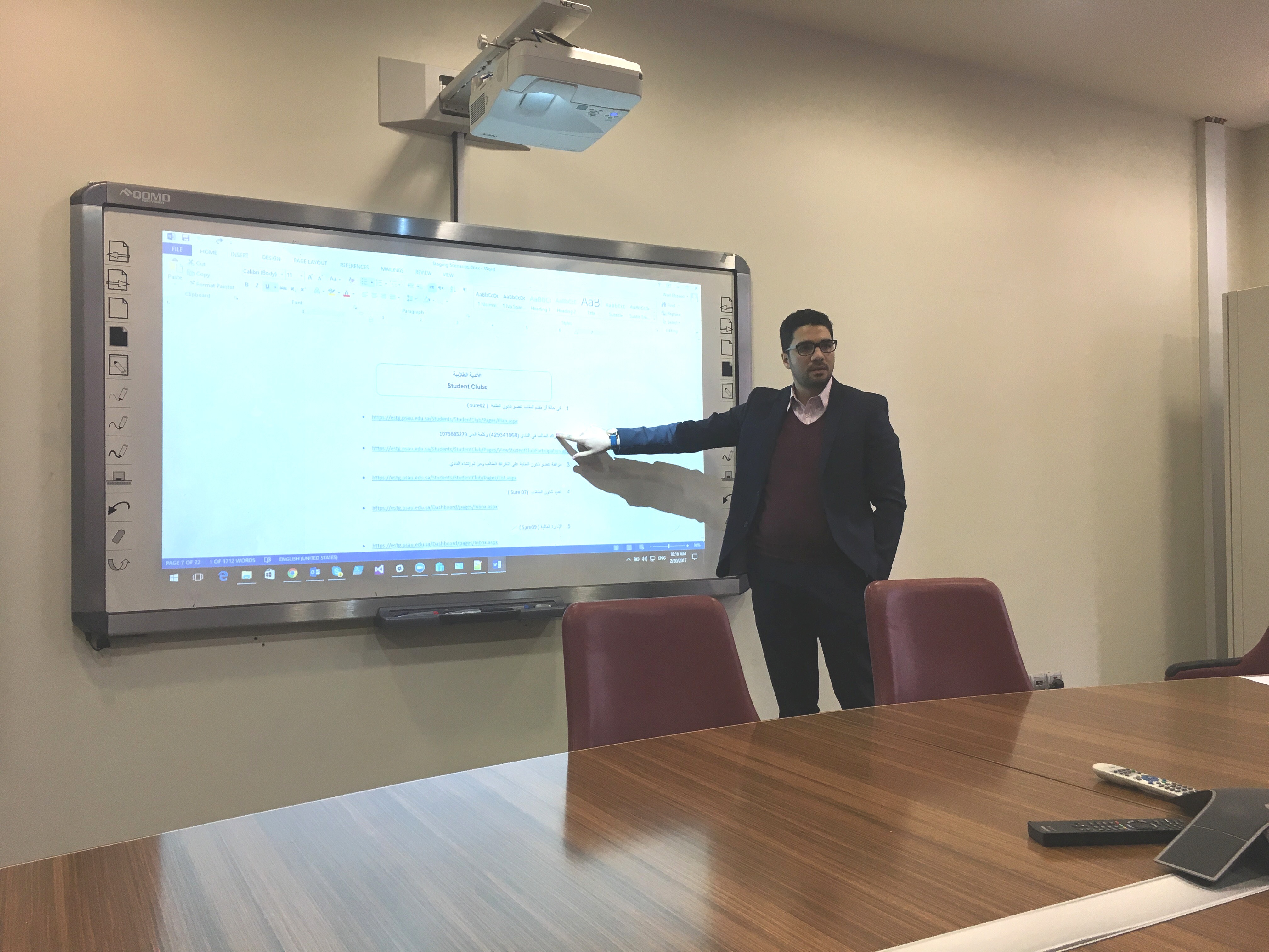 بعد سلسة اجتماعات عقدتها عمادة شؤون الطلاب مع عمادة تقنية المعلومات والتعليم عن بعد لإنشاء بوابة الأنشطة الطلابية الإلكترونية ومثيلة لها للأندية الطلابية , أطلعت العمادة اليوم الاثنين 23 / 5 / 1438هـ بقاعة الاجتماعات بعمادة تقنية المعلومات على النسخة المبدئية من البوابة و الاستماع لشرح مفصل عن أقسام البوابة و إجراءاتها و آلية عملها , من حيث كيفية طريقة رفع البرامج والأنشطة من قبل الكليات واعتمادها من قبل الجهات المختصة , وكذلك رفع برامج الأندية الطلابية واعتمادها , كم تم أيضا ًعرض لآلية تقديم الطلاب والطالبات على تلك البرامج والمشاركة بها , حيث نوقش جميع ما تم عرضه من قبل الحضور و إبداء الملاحظات والمرئيات عليها والعمل على إيجاد الحلول والبدائل المناسبة التي تسهم في جعل البوابة أكثر مرونة وسهولة.