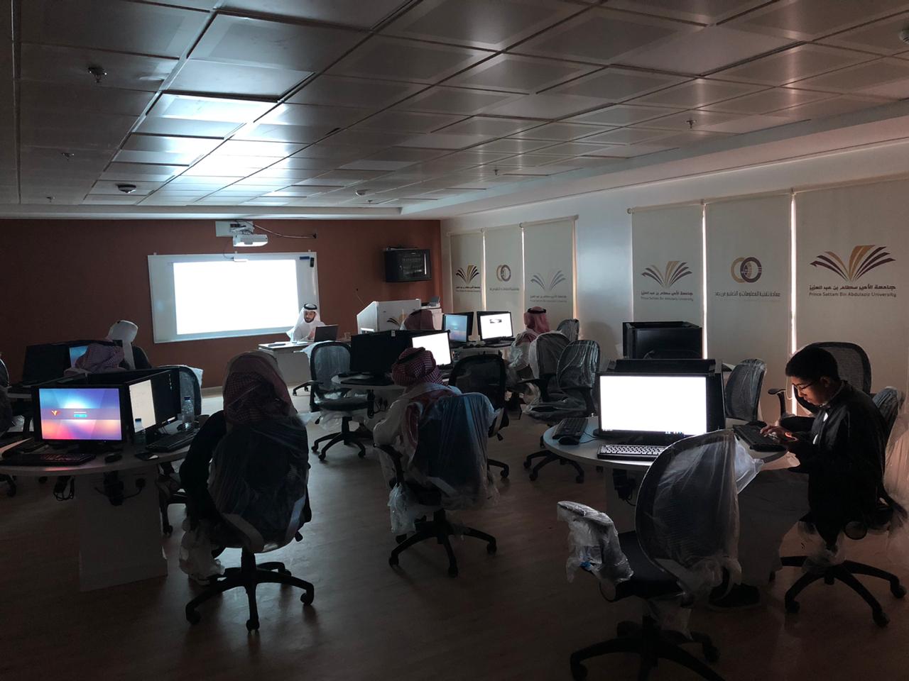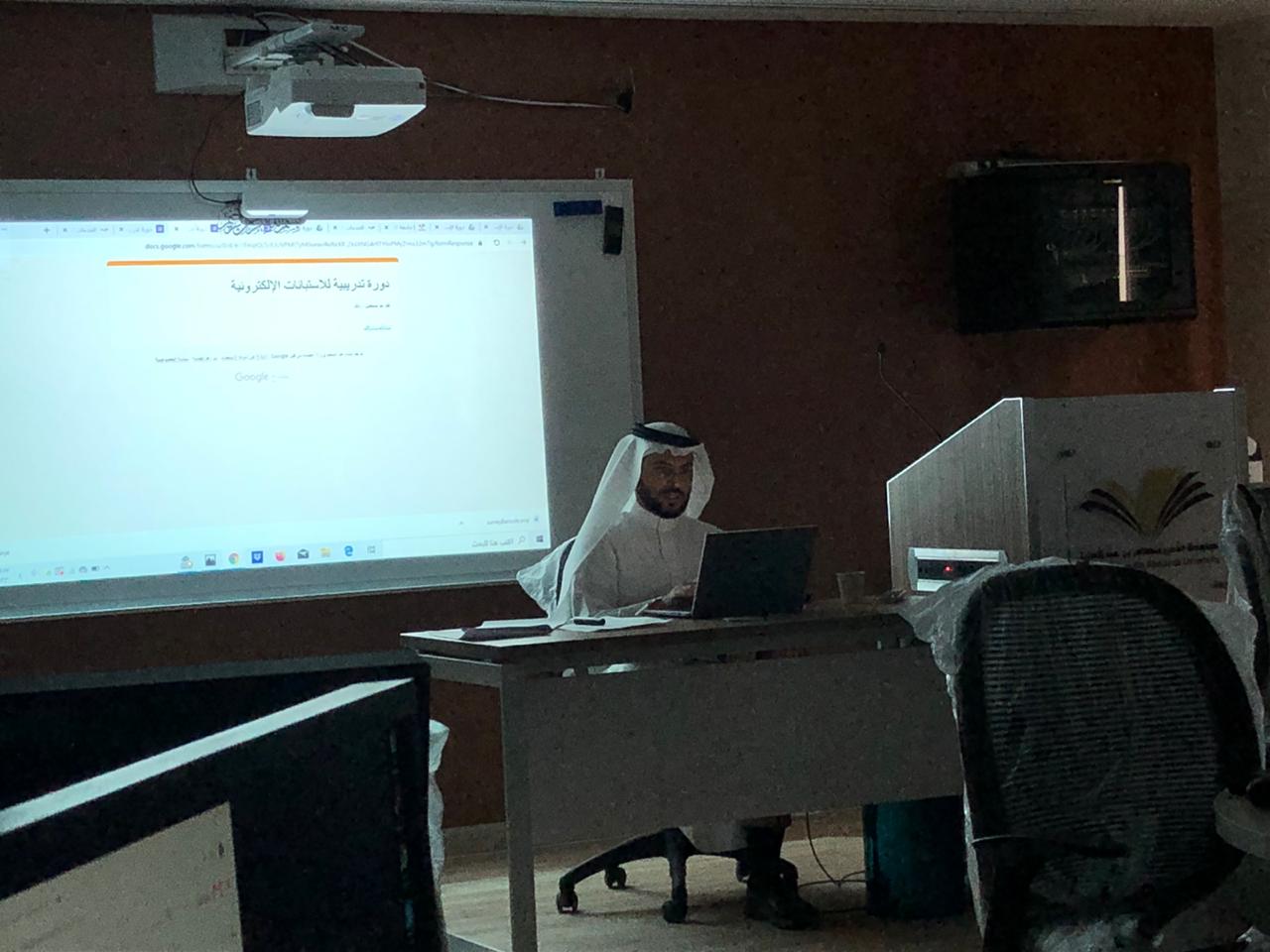 نظمت وكالة الشؤون الفنية بعمادة شؤون الطلاب صباح اليوم الأثنين 23 / 6 /1441هـ في قاعة الحاسب الآلي بالإسكان الطلابي ،دورة تدريبية لمنسوبي العمادة بعنوان "الاستبيانات الإلكترونية" ،قدمها قدما الأستاذ شباب الغامدي المحاضر بكلية هندسة وعلوم الحاسب.