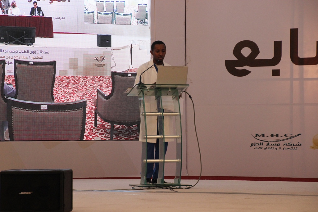 ففي اليوم الأول من فعاليات المؤتمر الأحد 3 \ 7 \ 1437 وفي الفترة الأولى ناقشت لجنة التحكيم المكونة من البروفسور فارس العنزي والدكتور خرم لطيف شاه والأستاذ/ يوسف الفقير على مسرح المؤتمر وأمام الحضور البحوث المقدمة من قبل الطلاب والطالبات المشاركين في محور الأبحاث الصحية في المؤتمر .
