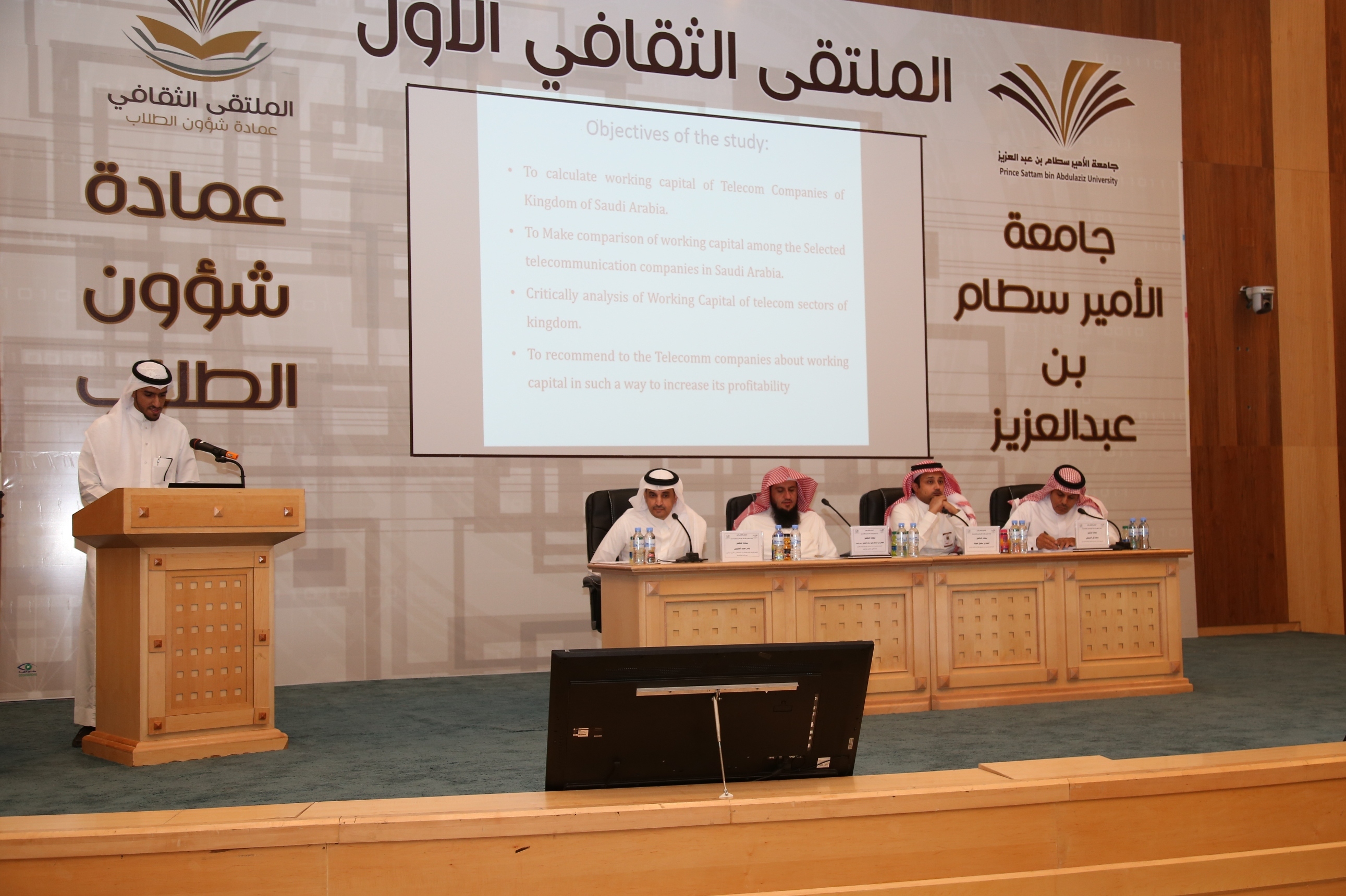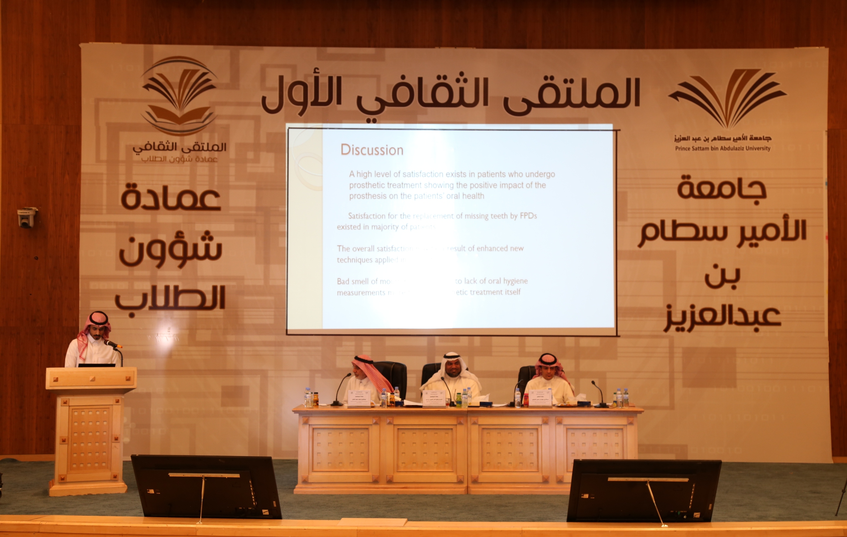 افتتحت عمادة شؤون الطلاب فعاليات الملتقى الثقافي الأول الذي تنظمه خلال الفترة 26 / 7 - 1 / 8 /1438هـ بمسرح إدارة الجامعة بكلية الطب.