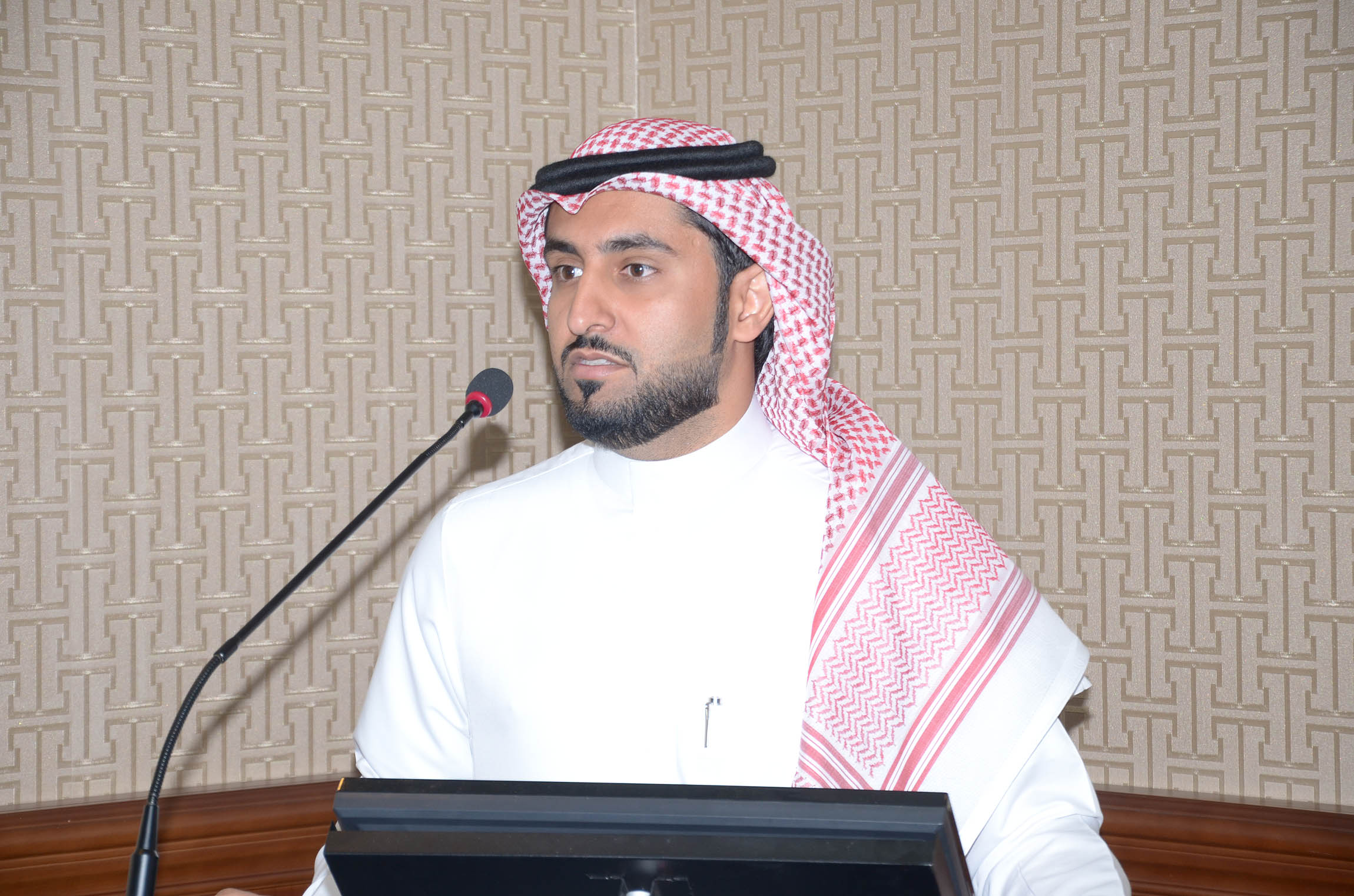 بعد ذلك ألقاء مساعد عميد شؤون الطلاب للأنشطة الطلابية الأستاذ جمال الحمداء كلمة حث فيها مشرفي الأنشطة التجديد والتنويع في طرح البرامج والفعاليات بما يناسب مستوى الطالب الجامعي ويحقق رغبته , كما قدم في نهاية كلمته قدم شكره وامتنانه للكليات على الانجازات الذي حققت خلال العام الدراسي المنصرم متمنياً لهم التوافيق والسداد.