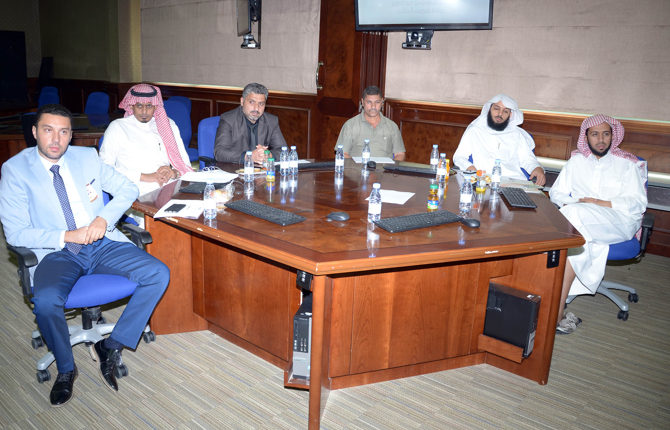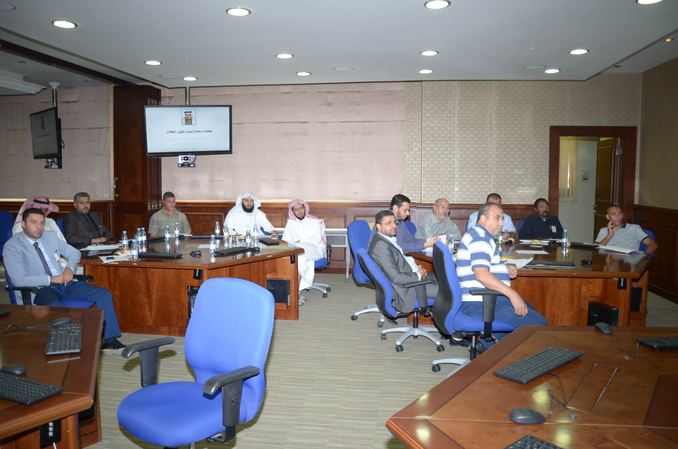 عقدت عمادة شؤون الطلاب اجتماعاً مع مشرفي الأنشطة الطلابية بكليات البنين وذلك يوم الاثنين الموافق 18/12/1437هـ بقاعة التدريب بالمدينة الجامعية بالسيح.