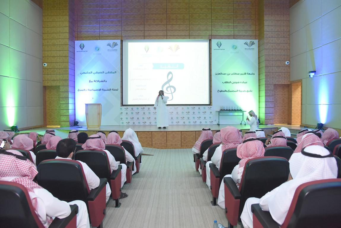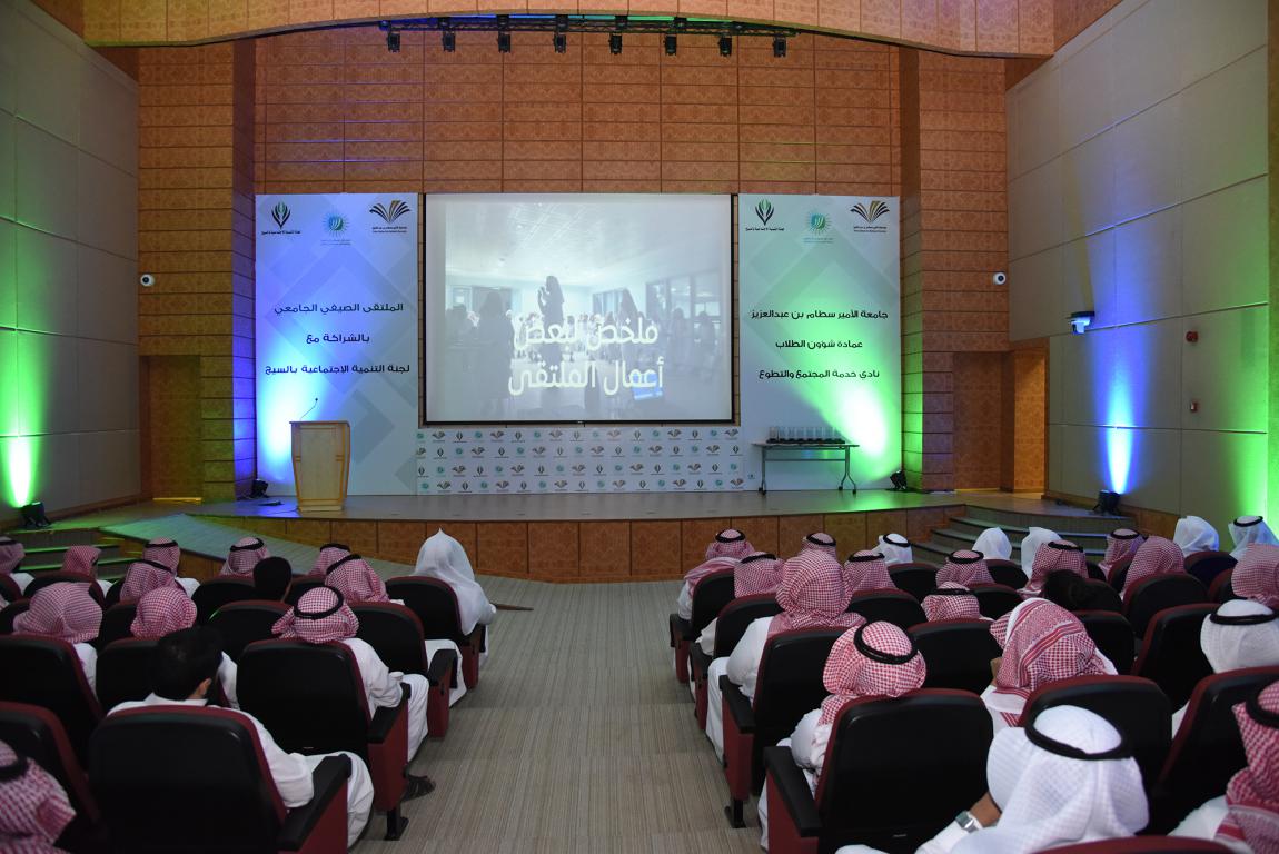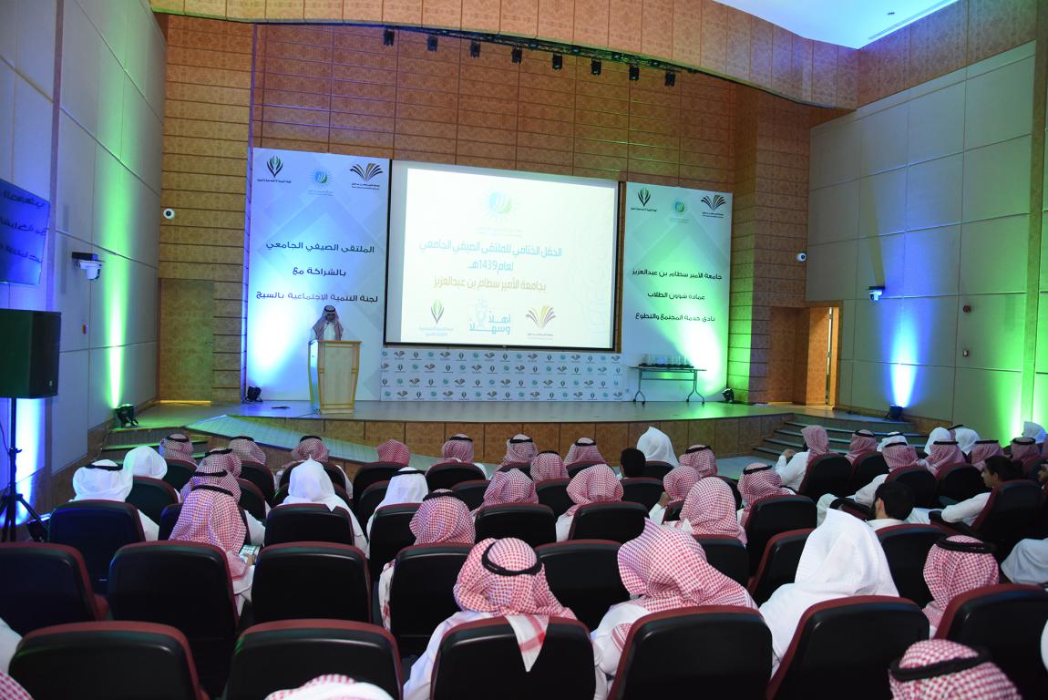 أختتمت مساء الثلاثاء 11 / 11 / 1439هـ فعاليات الملتقى الصيفي الجامعي والذي تنظمه عمادة شؤون الطلاب بجامعة الأمير سطام بن عبدالعزيز بالشراكة مع لجنة التنمية الاجتماعية بالسيح , ذلك خلال حفلاً أقيم بهذه المناسبة على مسرح كلية الهندسة بالمدينة الجامعية , برعاية عميد شؤون الطلاب الدكتور ثلاب الشكرة وحضور نخبة من مسؤولي الجامعة ومنسوبيها وممثلي لجان التنمية الاجتماعية والجمعيات الخيرية بمحافظة الخرج.
