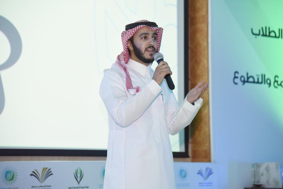 بدء الحفل بآيات من الذكر الحكيم تلاها الطالب عايض بن سعد الدوسري , بعدها ألقى المشرف على نادي خدمة المجتمع والعمل التطوعي ومدير الملتقى الصيفي الأستاذ عبدالرحمن الفواز كلمة في بدايتها قدم شكره لكل من دعم وساند إدارة الملتقى في إقامة فعالياته والتجهيز لها وتغطيتها إعلامياً وتسخير كافة الإمكانيات من منسوبي عمادة شؤون الطلاب وعلى رأسهم عميد شؤون الطلاب الدكتور ثلاب الشكرة , ومن مختلف الإدارات بالجامعة , وذكر خلال كلمته بأن نادي خدمة المجتمع والعمل التطوعي والذي يعتبر هذا الملتقى أول مبادراته يطمح في تحقيق ما تدعو له رؤية المملكة العربية السعودية 2030 والذي يعتبر من أهم عناصرها وهو زيادة أعداد المتطوعين وساعات العمل التطوعي , وذكر الفواز أنه ومن خلال هذا الملتقى تعرفنا وكسبنا الكثير من الطاقات والمواهب الشبابية في مختلف المجالات و الفنون كالإنشاد والرسم وغيرها, وكذلك رأينا حس البذل والعطاء من هؤلاء الشباب الطموح , التي وبأذن الله سنعمل على تنميتها وتعزيزها ورعايتها وإفادتها وإفادة المجتمع بها.