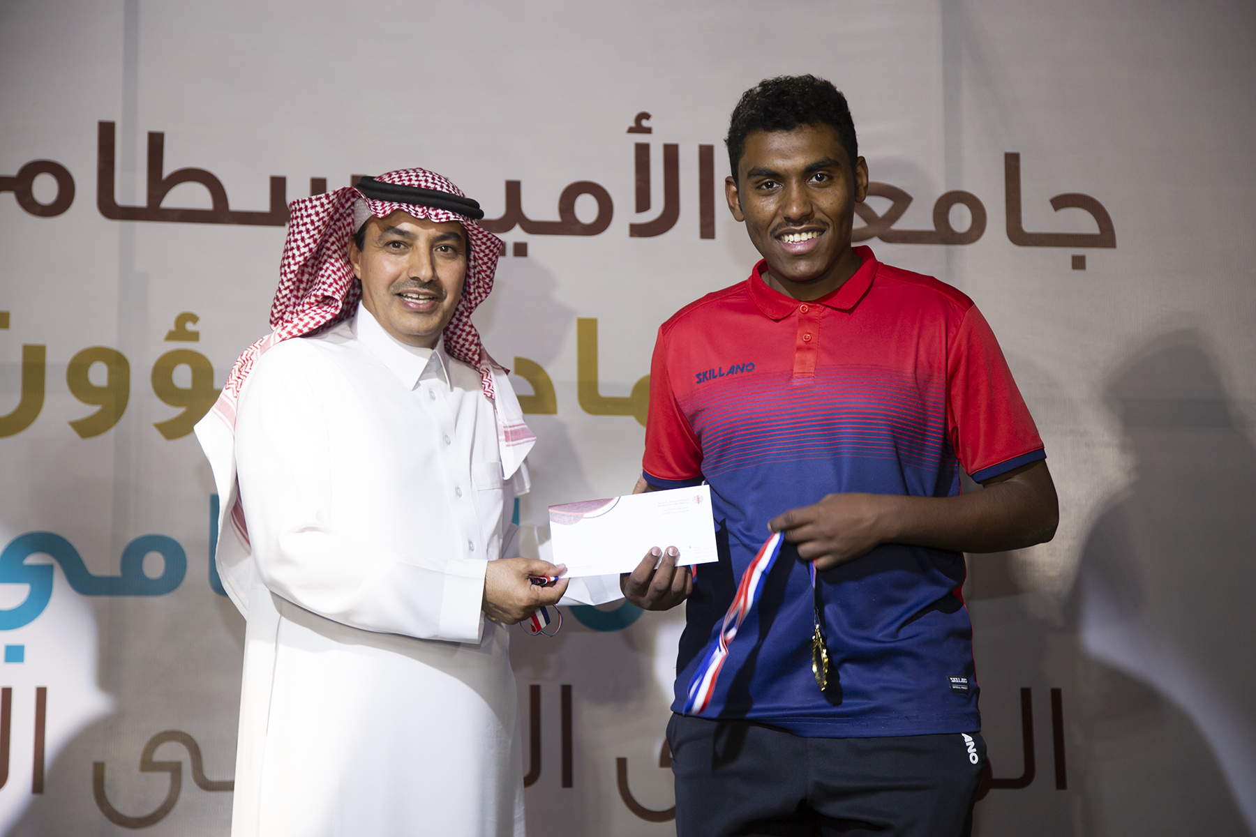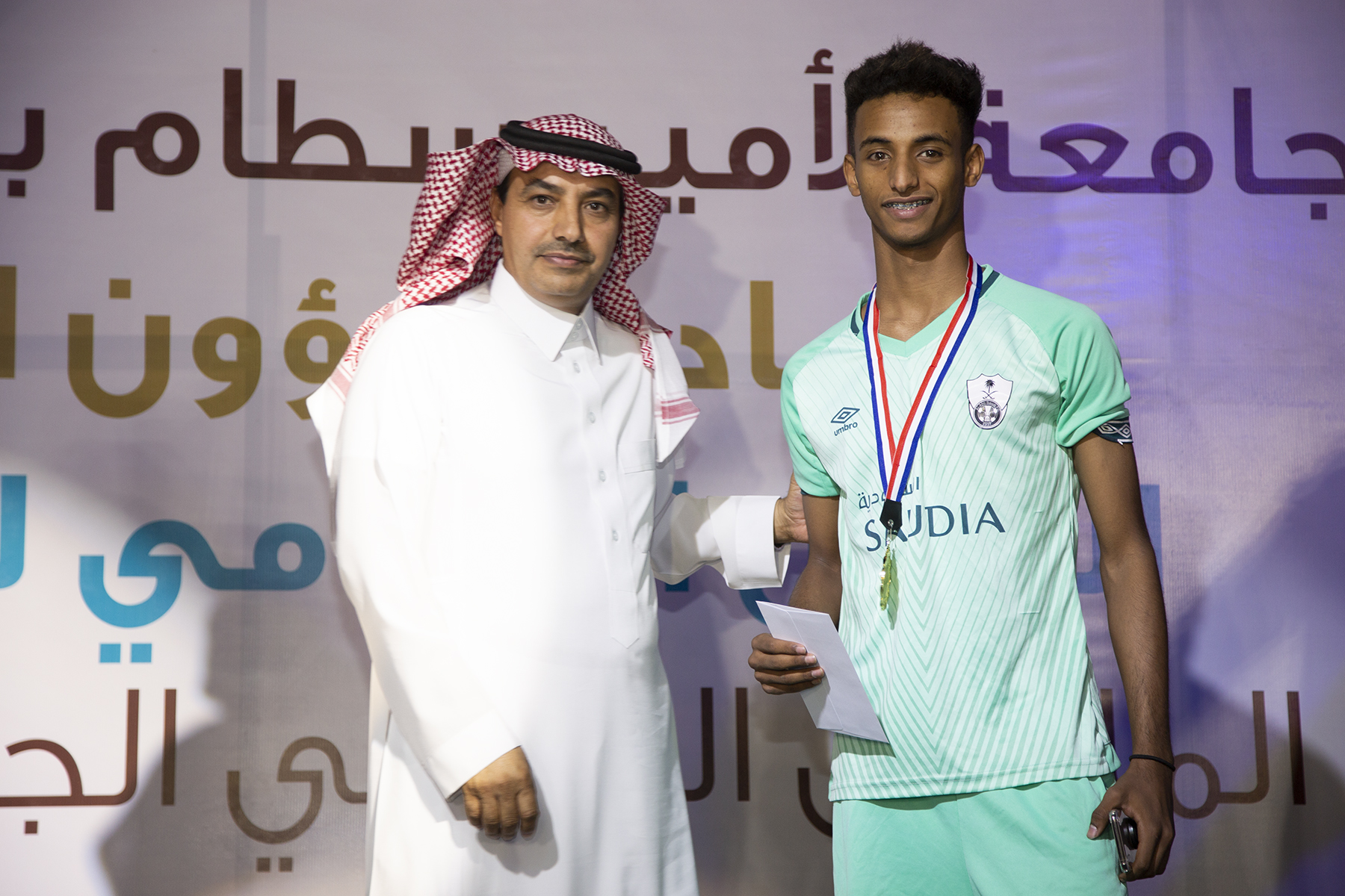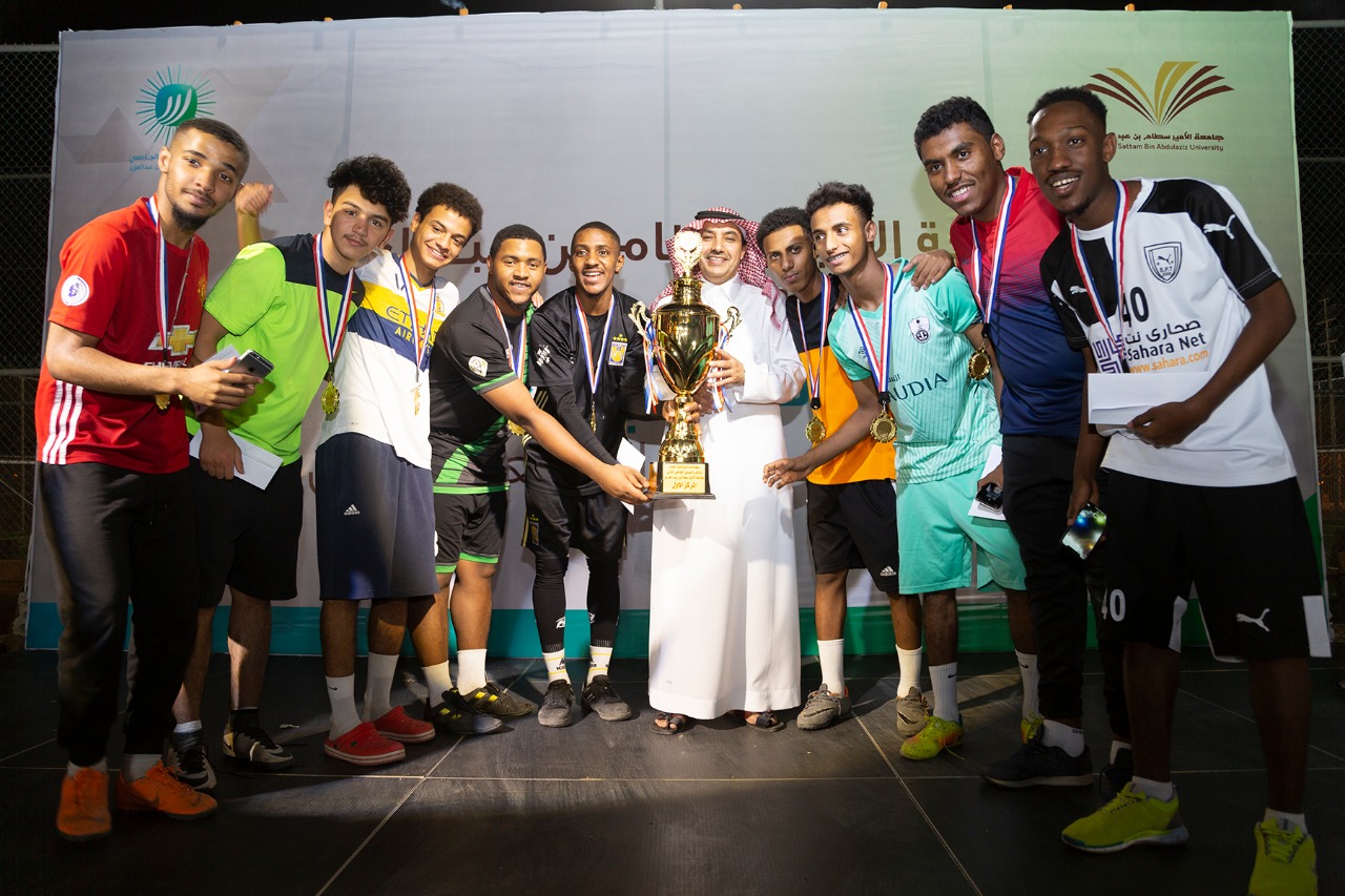 بعدها توج عميد شؤون الطلاب بطل بطولة سداسيات كرة القدم فريق نادي الحي بثانوية الملك عبدالله بتسليمه كأس البطولة والميداليات الذهبية , كما كرم صاحب المركز الثاني في البطولة فريق نادي محمد بن عبدالوهاب بالدلم.