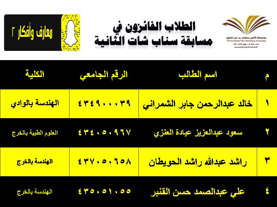 هذا وقد أسفر السحب عن فوز أربعة طلاب، وسيتم التواصل معهم لتسليمهم الجوائز النقدية، والطلاب الفائزون هم: