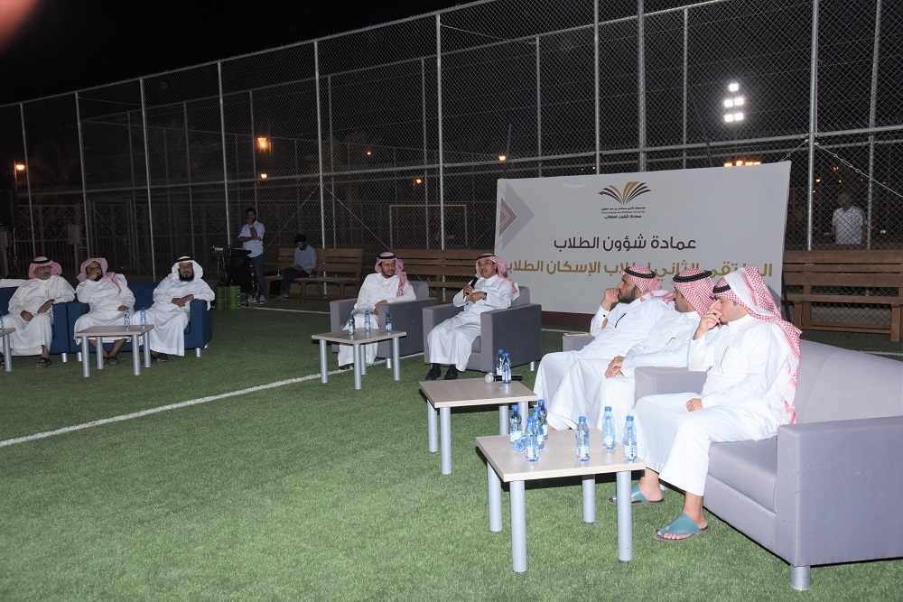 برعاية عميد شؤون الطلاب الدكتور ثلاب بن عبدالله الشكره نظمت عمادة شؤون الطلاب مساء يوم الثلاثاء 9 / 2 / 1441هـ الملتقى الثاني لطلاب الإسكان الطلابي , وذلك بحضور وكيل عمادة شؤون الطلاب للخدمات الطلابية والإسكان الدكتور عبدالله الشتيلي , ومدير إدارة الإسكان الطلابي الأستاذ فيصل القحطاني , ومدير إدارة عمادة شؤون الطلاب الأستاذ عمر العبدالله , وعدداً من منسوبي عمادة شؤون الطلاب.