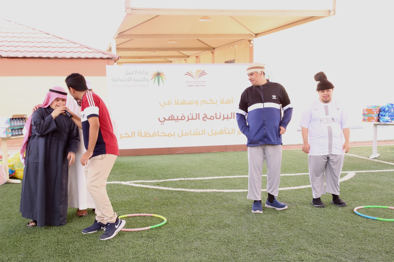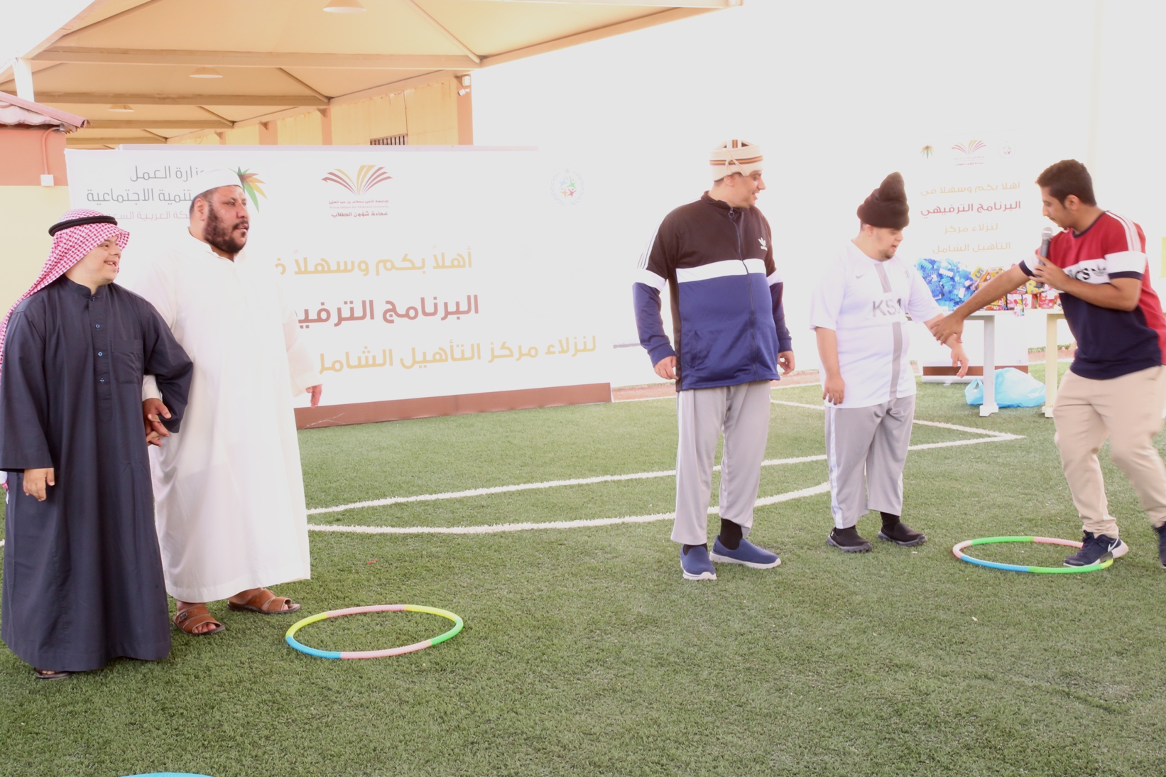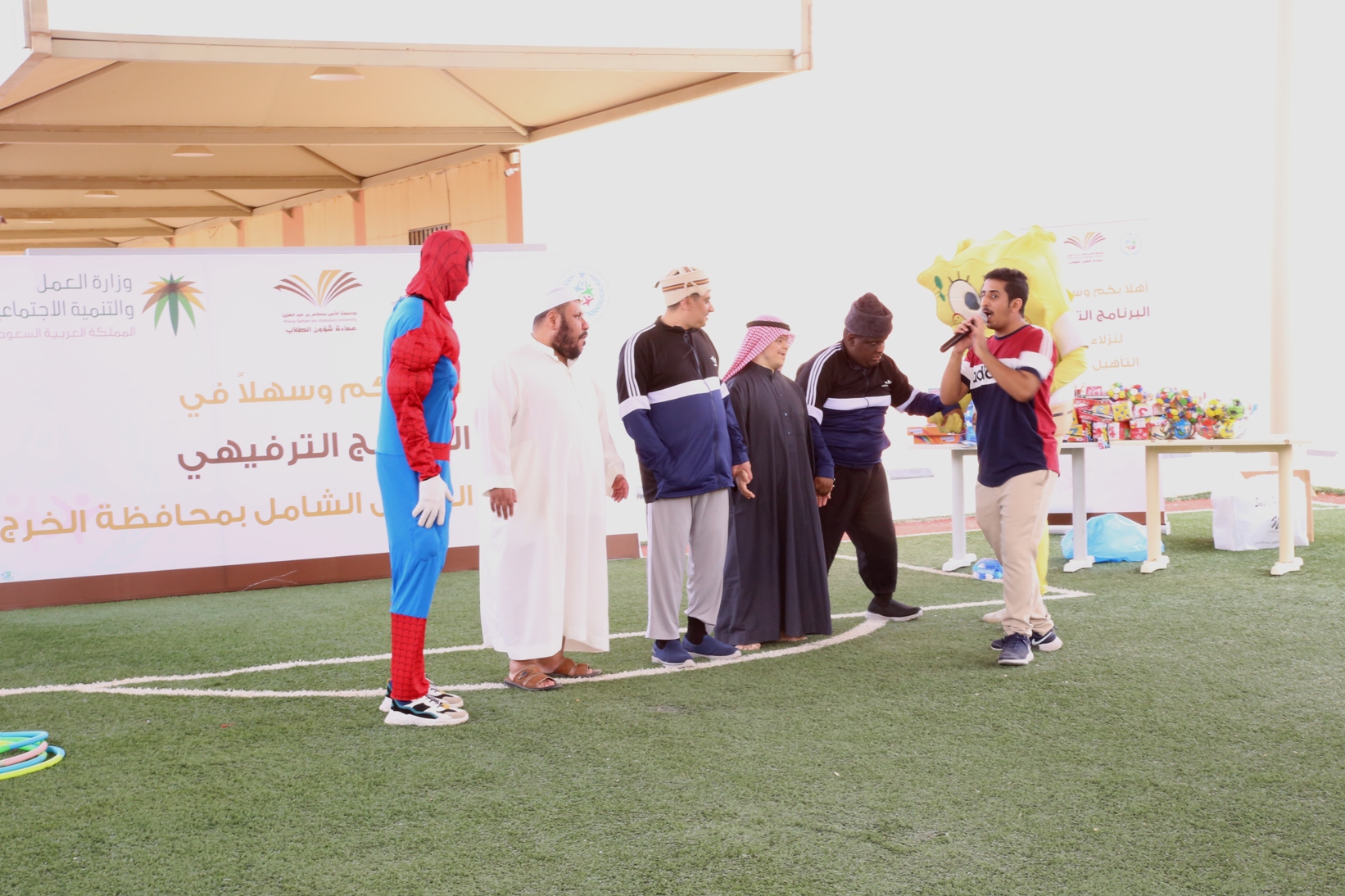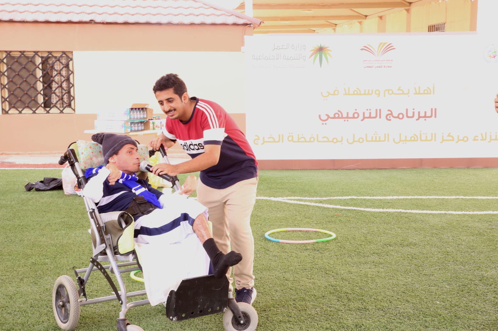 بمناسبة اليوم العالمي للأشخاص ذوي الإعاقة نظمت عمادة شؤون الطلاب صباح يوم الأربعاء 14/4/1441هـ برنامجاً ترفيهي وترويحي لنزلاء مركز التأهيل الشامل بمحافظة الخرج , قدم خلاله العديد من المسابقات والفعاليات مصحوبة بعرض لبعض المواهب لدى النزلاء الحركية منها والصوتية , كما تخللها توزيع العديد من الجوائز والهدايا.