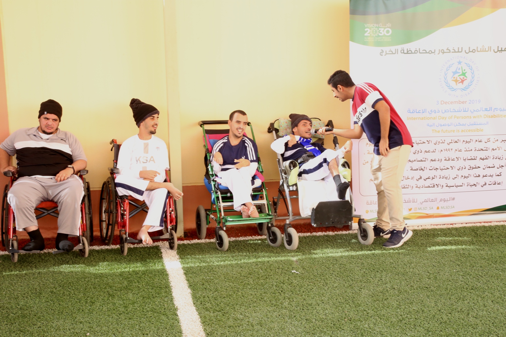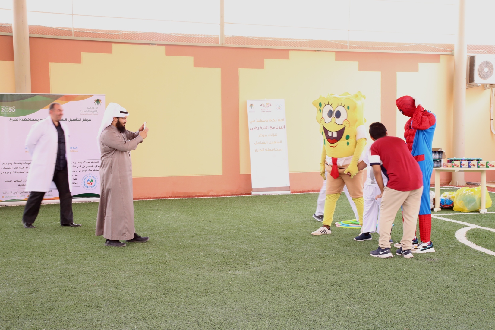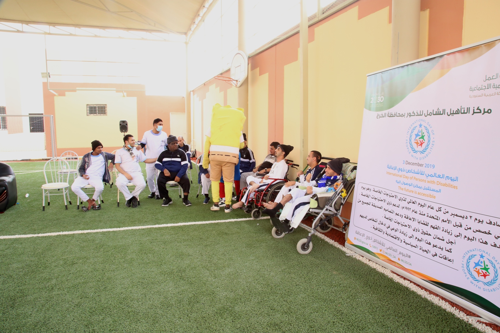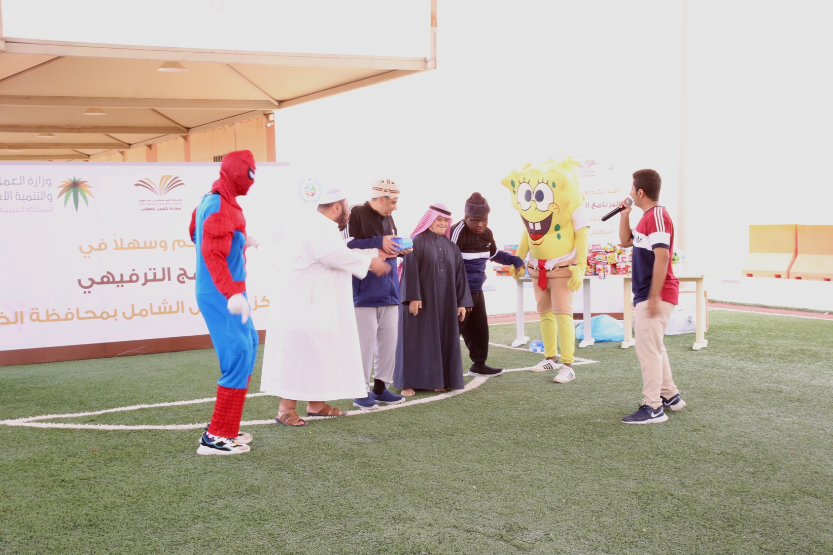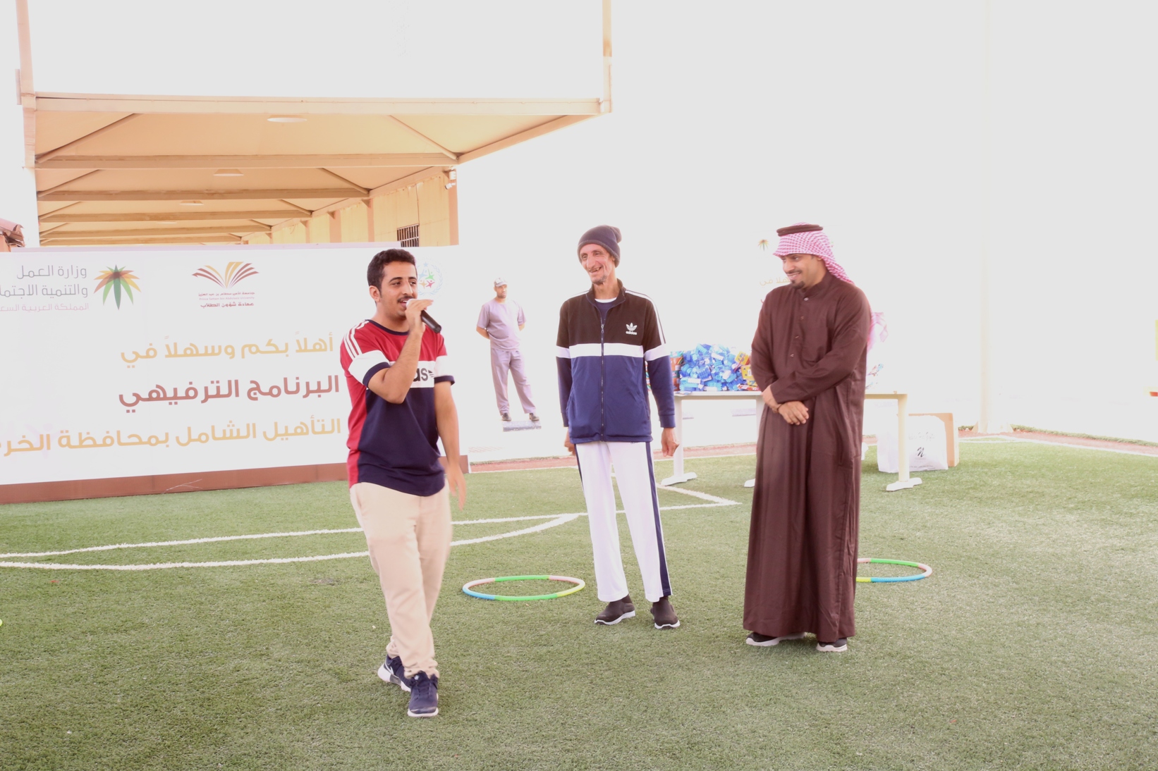 بمناسبة اليوم العالمي للأشخاص ذوي الإعاقة نظمت عمادة شؤون الطلاب صباح يوم الأربعاء 14/4/1441هـ برنامجاً ترفيهي وترويحي لنزلاء مركز التأهيل الشامل بمحافظة الخرج , قدم خلاله العديد من المسابقات والفعاليات مصحوبة بعرض لبعض المواهب لدى النزلاء الحركية منها والصوتية , كما تخللها توزيع العديد من الجوائز والهدايا.