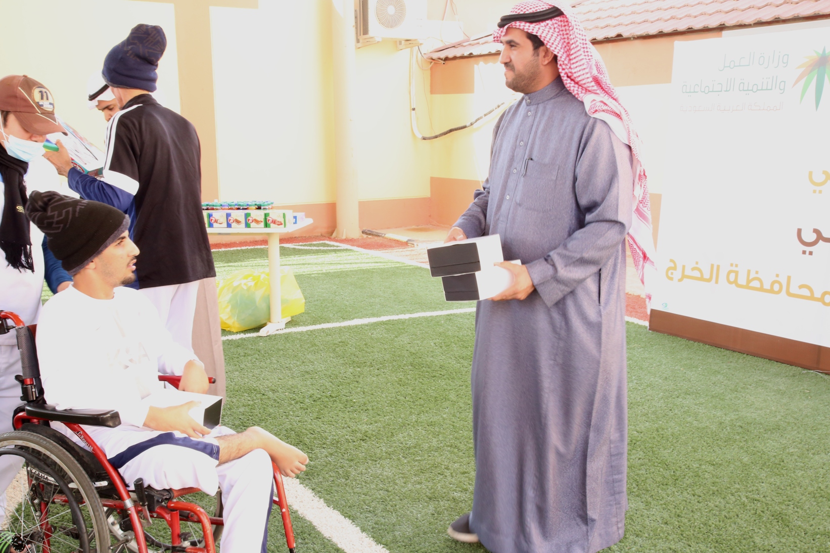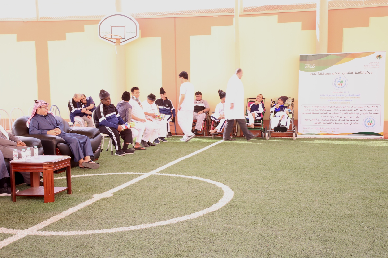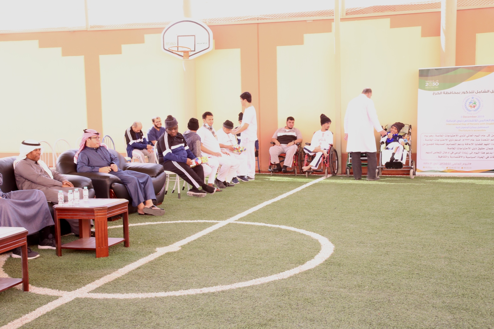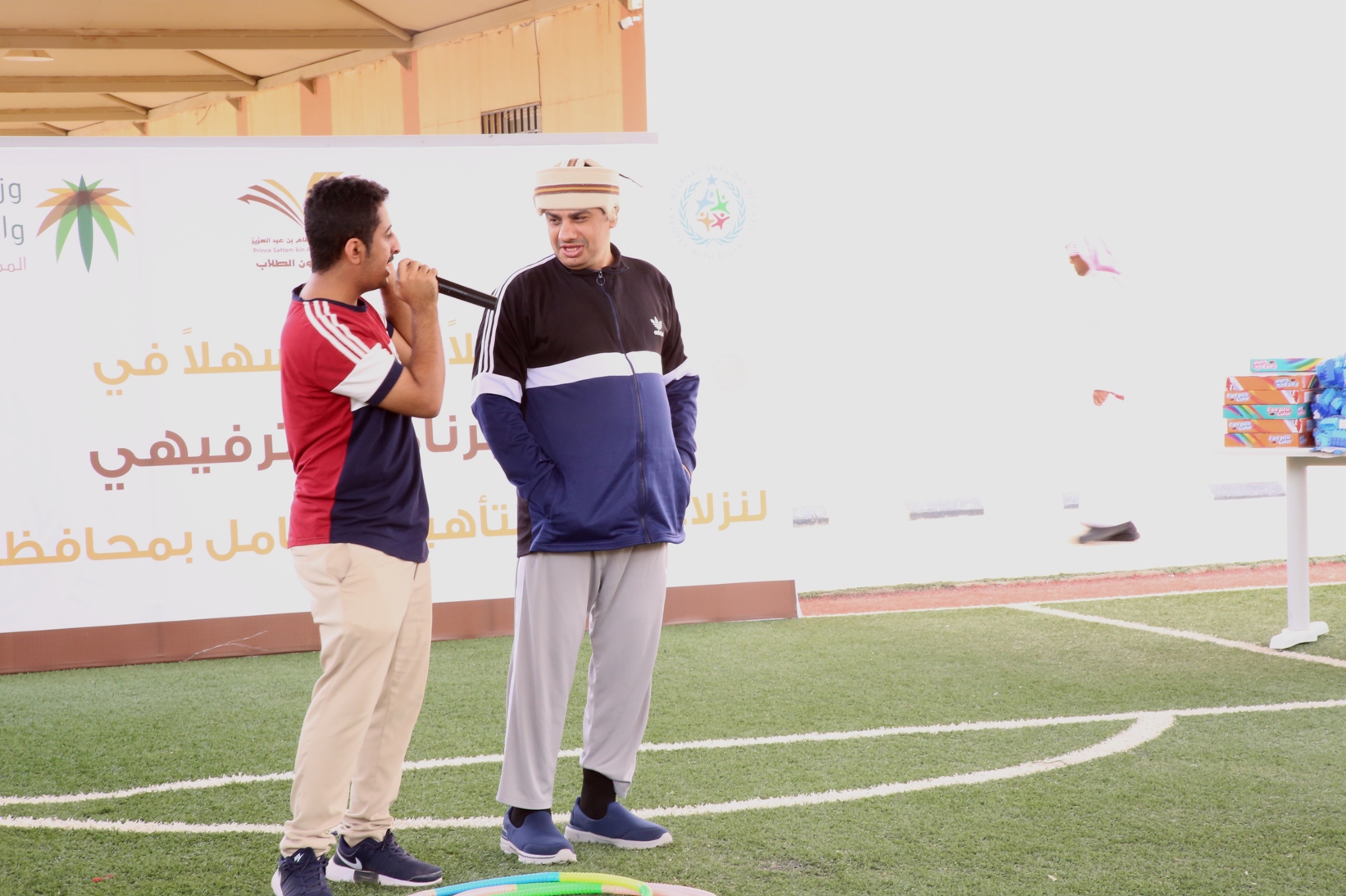 بمناسبة اليوم العالمي للأشخاص ذوي الإعاقة نظمت عمادة شؤون الطلاب صباح يوم الأربعاء 14/4/1441هـ برنامجاً ترفيهي وترويحي لنزلاء مركز التأهيل الشامل بمحافظة الخرج , قدم خلاله العديد من المسابقات والفعاليات مصحوبة بعرض لبعض المواهب لدى النزلاء الحركية منها والصوتية , كما تخللها توزيع العديد من الجوائز والهدايا.