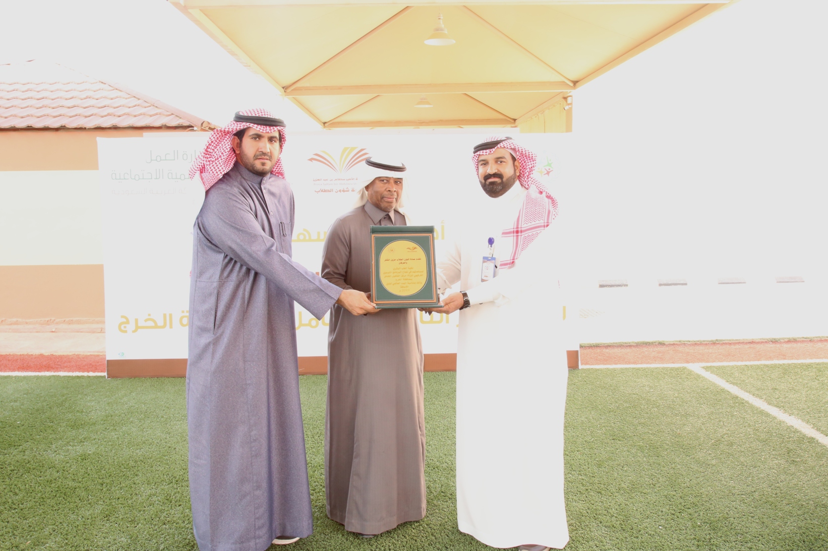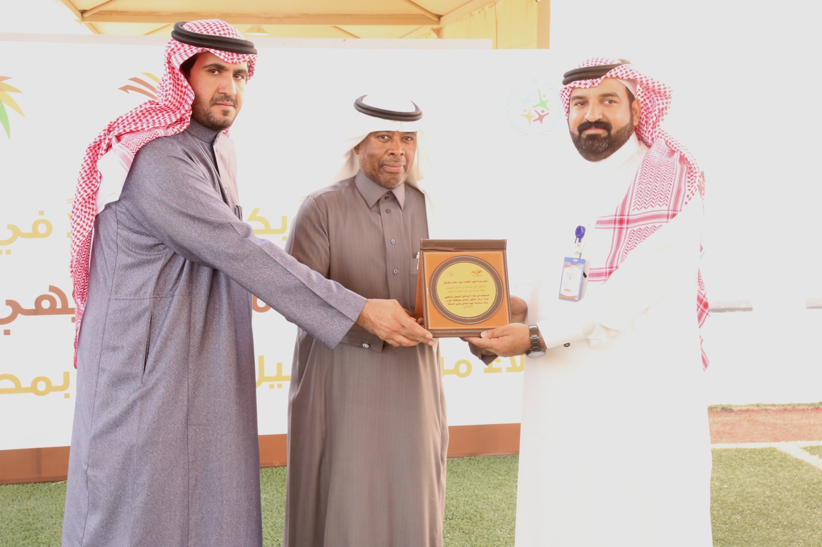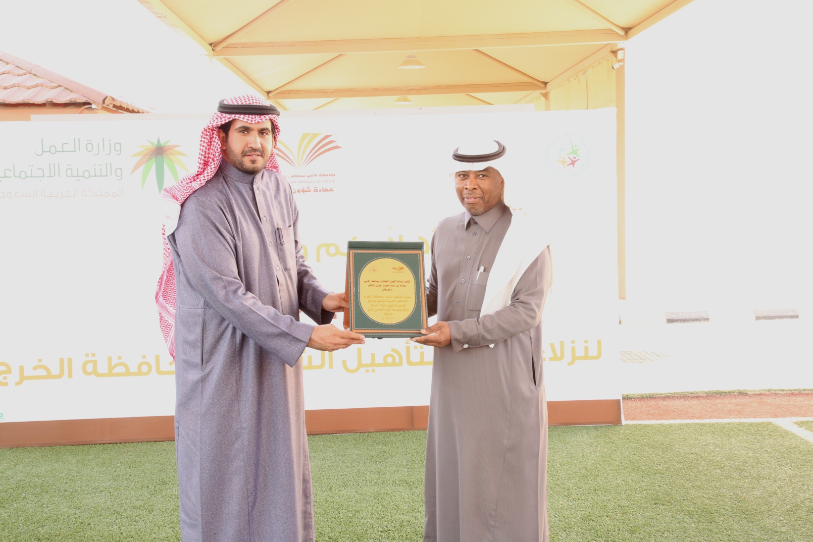 وفي ختام البرنامج قدمت عمادة شؤون الطلاب درعاً تذكارياً لإدارة مركز التأهيل الشامل بمحافظة الخرج لإتاحتهم الفرصة لإقامة هذا البرنامج لنزلاء المركز تسلمه مدير المركز الأستاذ عثمان بن محمد الدعيرم , كما قدمت دروعاً تذكارية لكل من ساهم في إنجاح الفعالية.