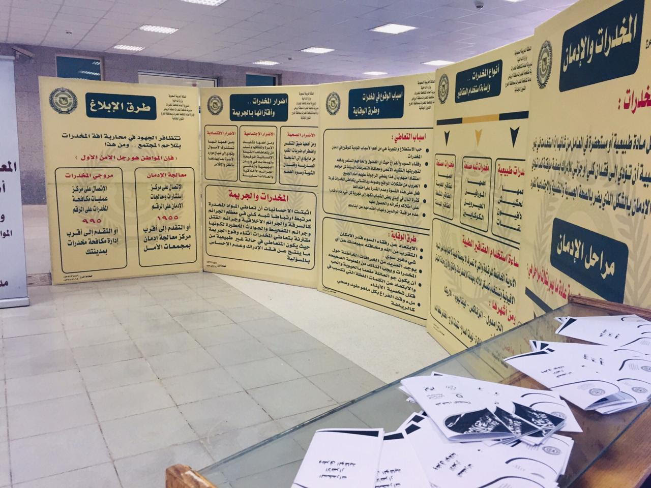 نظمت عمادة شؤون الطلاب بإشراف لجنة العمل المشترك مع المديرية العامة لمكافحة المخدرات ومكافحة التدخين بالجامعة وبالتعاون مع كلية التربية بالخرج معرض توعوي عن أضرار المخدرات وذلك يومي الأربعاء و الخميس ٣/٢٩ إلى 1/4 - ١٤٤١ تضمن المعرض عرضاً مرئياً حول مراحل الادمان و أنواعه ، كما احتوى أيضاً على لوحات جدارية بينت أسباب التعاطي و أنواع الأضرار الناتجة من التعاطي وطرق الوقاية منها ، كما احتوى المعرض على منشورات تم توزيعها على الزوار حول المخدرات وطرق الوقاية كما تم تسليط الضوء في المعرض على وسائل الابلاغ عن حالات الادمان وحالات الترويج والجدير ذكره مشاركة طالبات الكلية بركن توعوي ضم منشورات توعوية بأضرار المخدرات ووجوب الحذر منها .