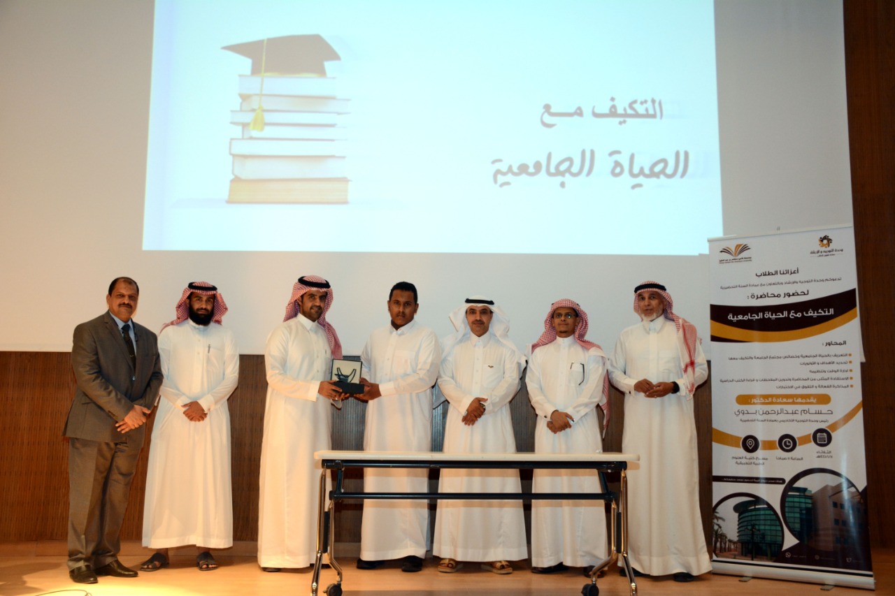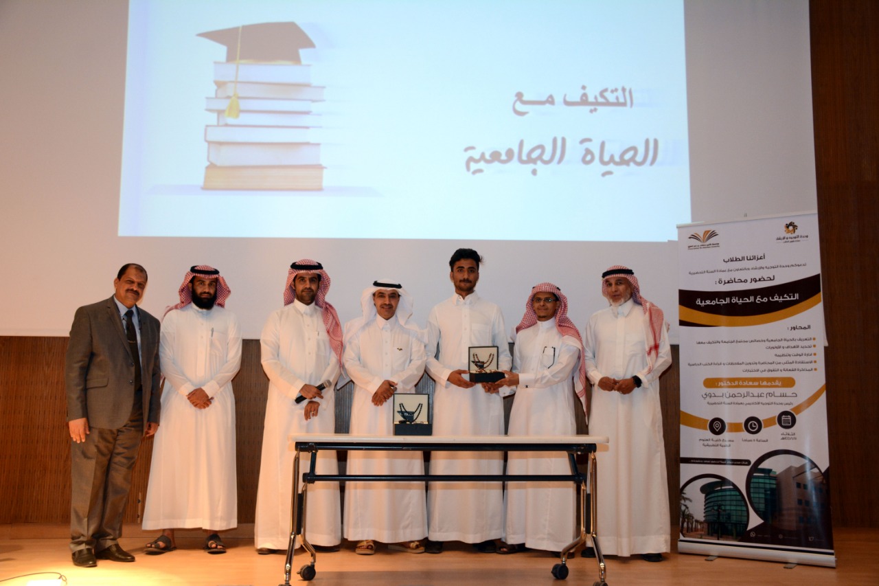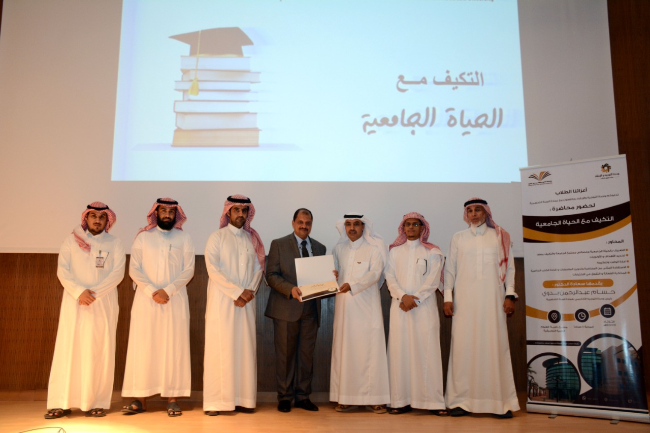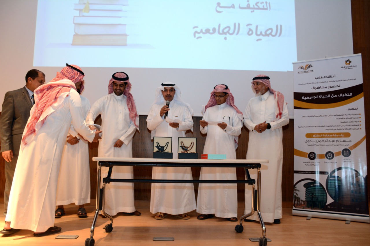 بحضور عميد عمادة شؤون الطلاب الدكتور/ ثلاب بن عبدالله الشكره نظمت وحدة التوجيه والإرشاد بعمادة شؤون الطلاب بالتعاون مع عمادة السنة التحضيرية ندوة بعنوان ( التكيف مع الحياة الجامعية ) ، قدمها د. حسام بدوي يوم الثلاثاء 11 / 1 /1441هـ .