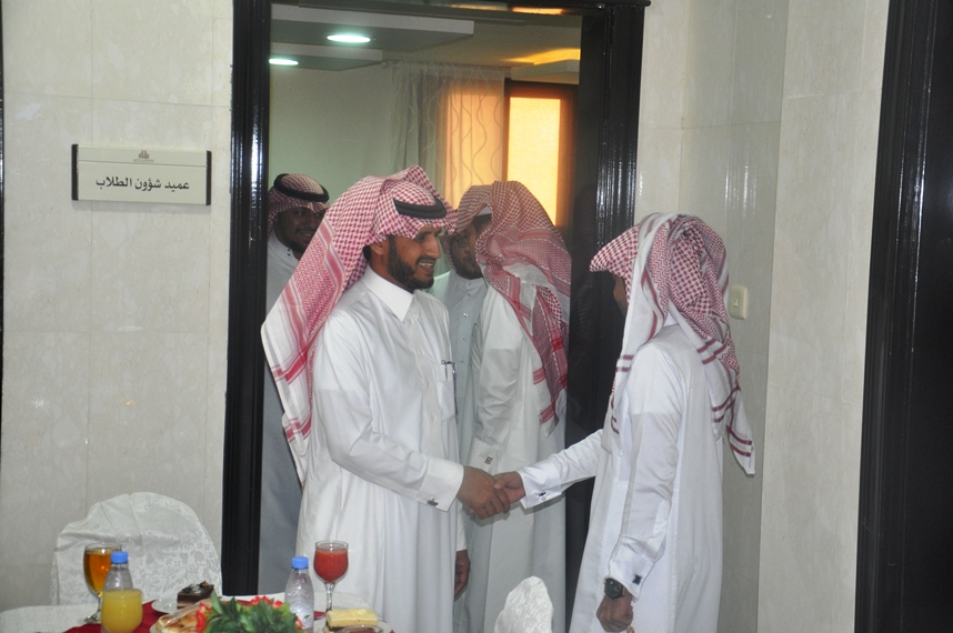 عمر آل عبدالله : أقامت عمادة شؤون الطلاب بجامعة سلمان بن عبدالعزيز حفل معايدة عيد الأضحى المبارك لمنسوبيها بحضور عميدها الدكتور مسفر بن محماس الكبيري ومديري الإدارات ورؤساء الأقسام وكافة منسوبي العمادة.