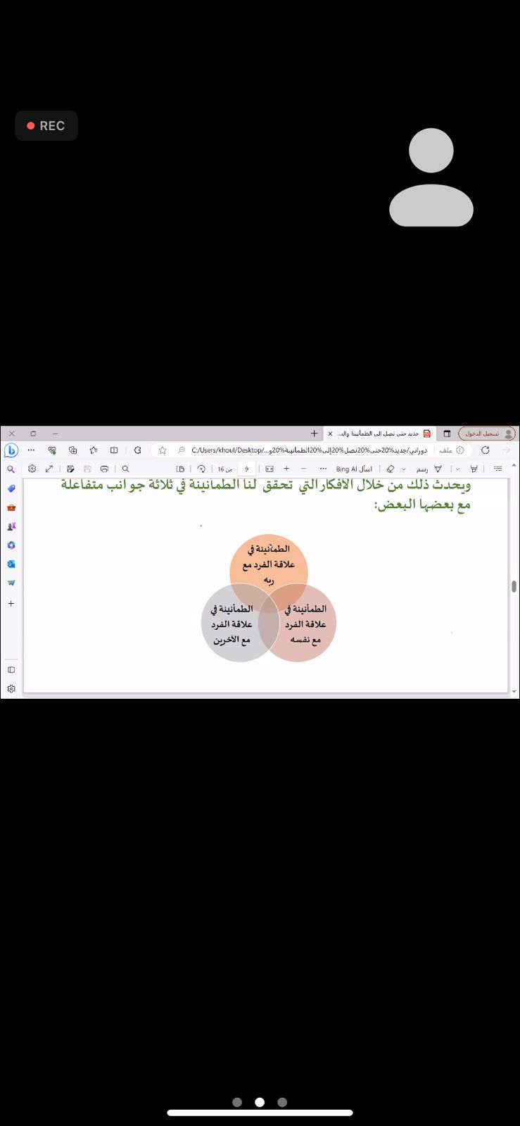 وتناولت الدكتورة خولة خلال المحاضرة التي قُدمت عبر تطبيق زوم، وبحضور ٢٣٣ من طلاب وطالبات الجامعة عددًا من المحاور، والمفاهيم للصحة النفسية ومفهومها الإيجابي والسلبي، وماهي الطمأنينة النفسية، وماهي العوامل المؤدية لها، وعلاقة الفرد بربه، وعلاقته بالآخرين، والإيمان بالقضاء والقدر، والقدرة على التعايش بسلام واطمئنان في عالم يملؤه الكثير من الصعوبات والتحديات.