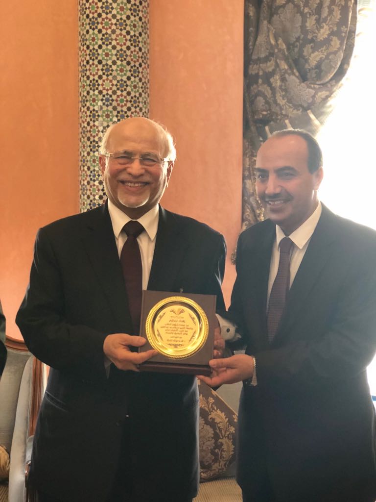 عقبها استقبل السفير السعودي لدى المملكة المغربية الدكتور عبدالعزيز خوجه وفود الجامعات السعودية وذلك بمقر السفارة بالرباط , حيث رحب معاليه برؤساء الوفود والطلاب المشاركين في كلمة ذكر خلالها أن الإعلام اليوم يشهد تطورات متسارعة مما يستلزم على الشباب استغلال الإعلام في تعزيز اللحمة الوطنية , وإيقاف الشائعات