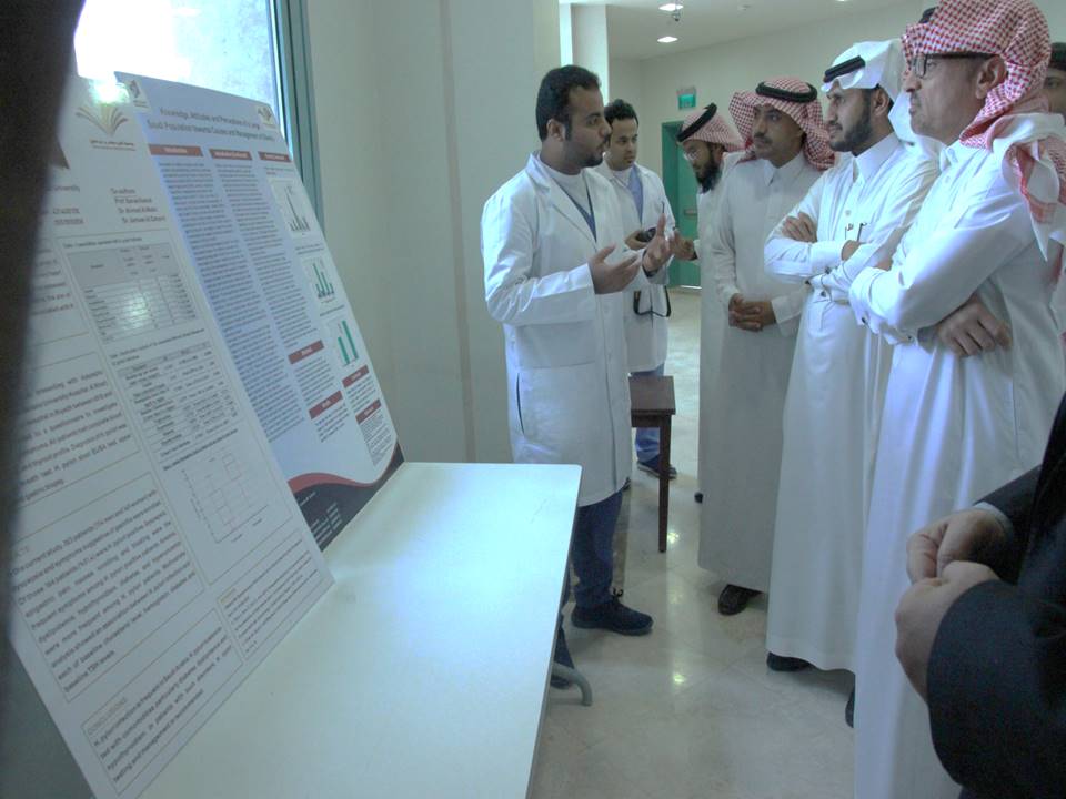 ضمن استعدادات كليات الجامعة للمشاركة في المؤتمر العلمي الطلابي السابع أقامت كلية الطب البشري في مسرح الجامعة الملتقى التحضيري للمشاركة في المؤتمر الطلابي السابع يوم الاربعاء الموافق 21/6/1437هـ، وكان الملتقى بحضور ورعاية عميد كلية الطب الدكتور / عبدالرحمن الذياب و عميد شؤون الطلاب الدكتور / مسفر بن محماس الكبيري ، وشهده عدد كبير من أعضاء هيئة التدريس والموظفين وطلاب الكلية الذين امتلأت بهم مدرجات مسرح الكلية.