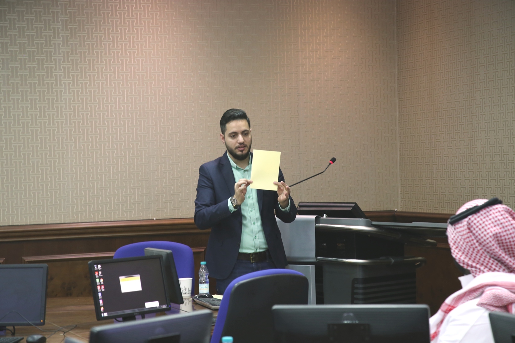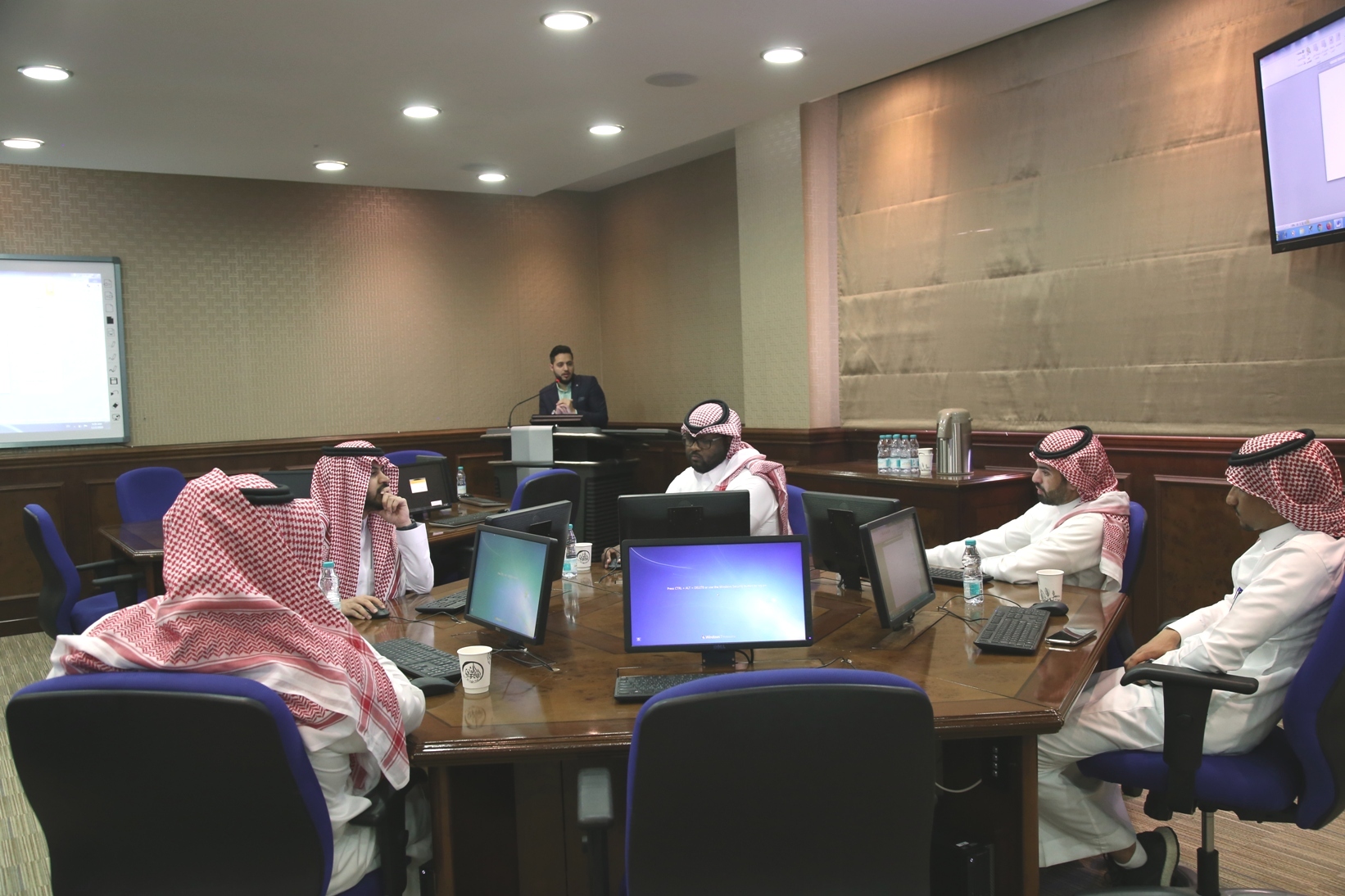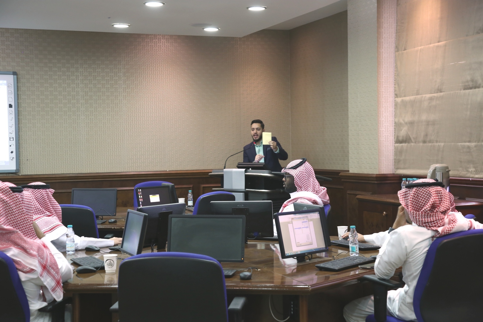 نظمت وكالة الشؤون الفنية بعمادة شؤون الطلاب صباح اليوم الاثنين 5 / 4 /1441هـ في قاعة تدريب كبار الشخصيات بكلية الطب،دورة تدريبية لمنسوبي العمادة بعنوان "مهارات أساسية في الحاسب ــ الجزء الأول ــ ،قدمها المشرف على وحدة التطوير والجودة بالعمادة أ.زياد عدنان حامد.