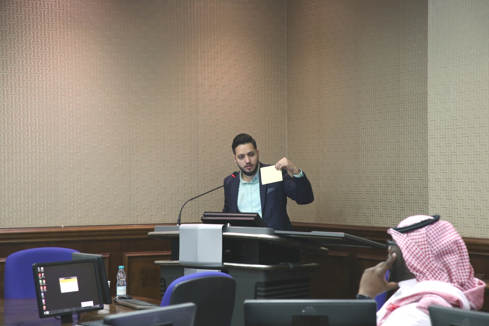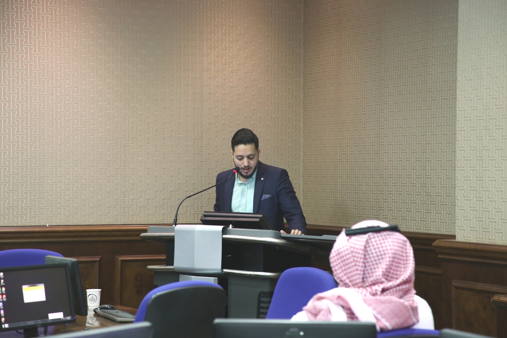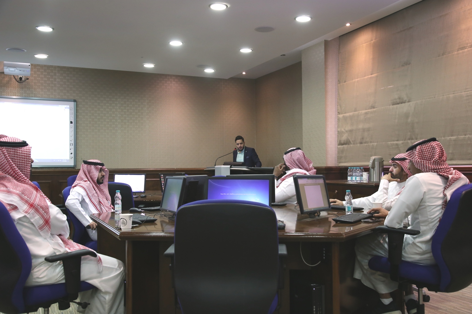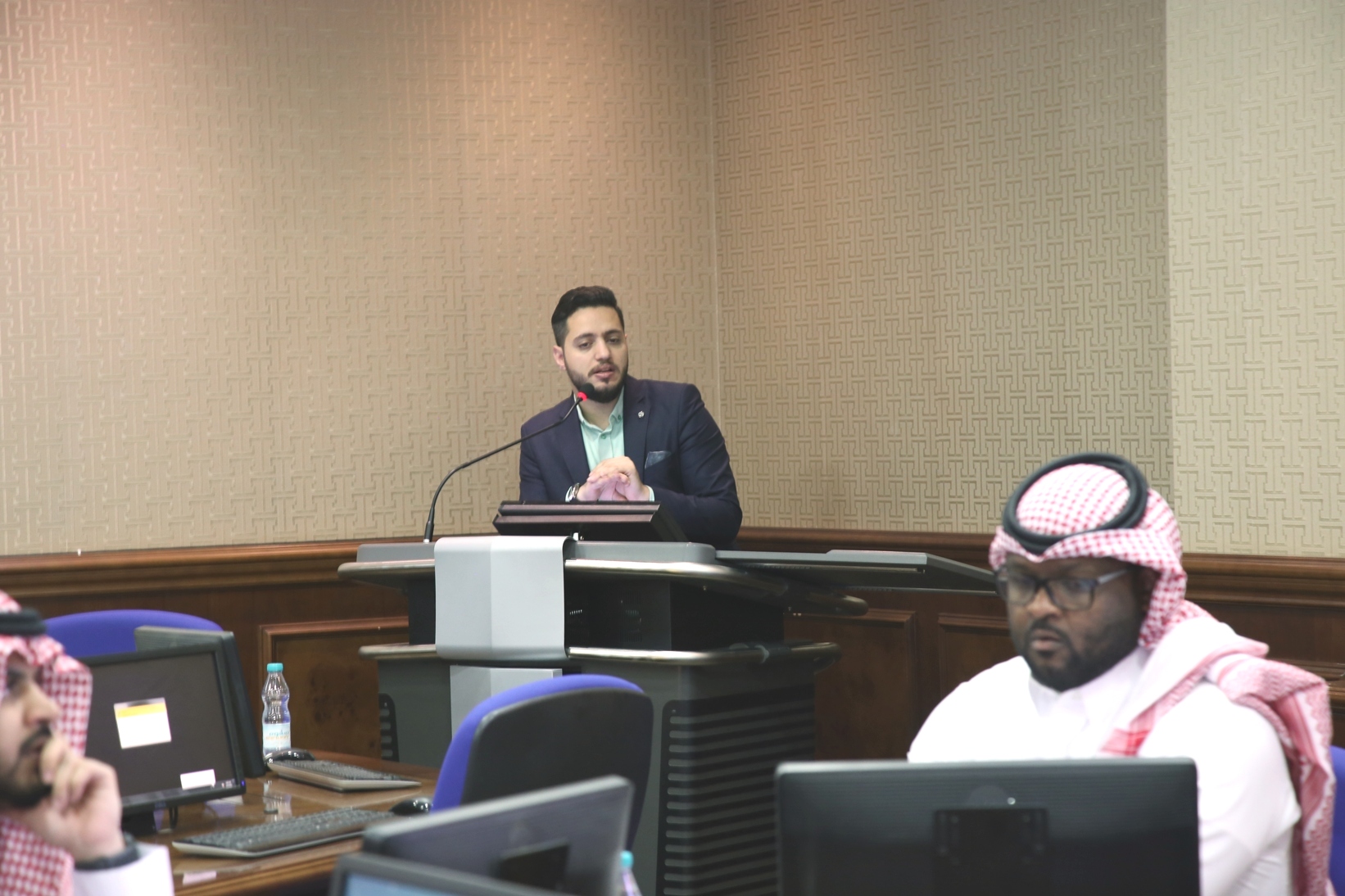 نظمت وكالة الشؤون الفنية بعمادة شؤون الطلاب صباح اليوم الاثنين 5 / 4 /1441هـ في قاعة تدريب كبار الشخصيات بكلية الطب،دورة تدريبية لمنسوبي العمادة بعنوان "مهارات أساسية في الحاسب ــ الجزء الأول ــ ،قدمها المشرف على وحدة التطوير والجودة بالعمادة أ.زياد عدنان حامد.