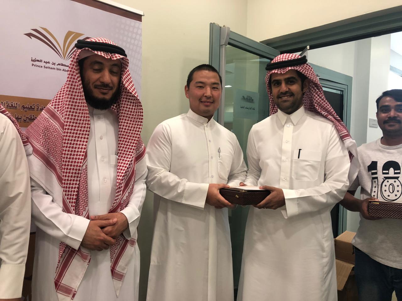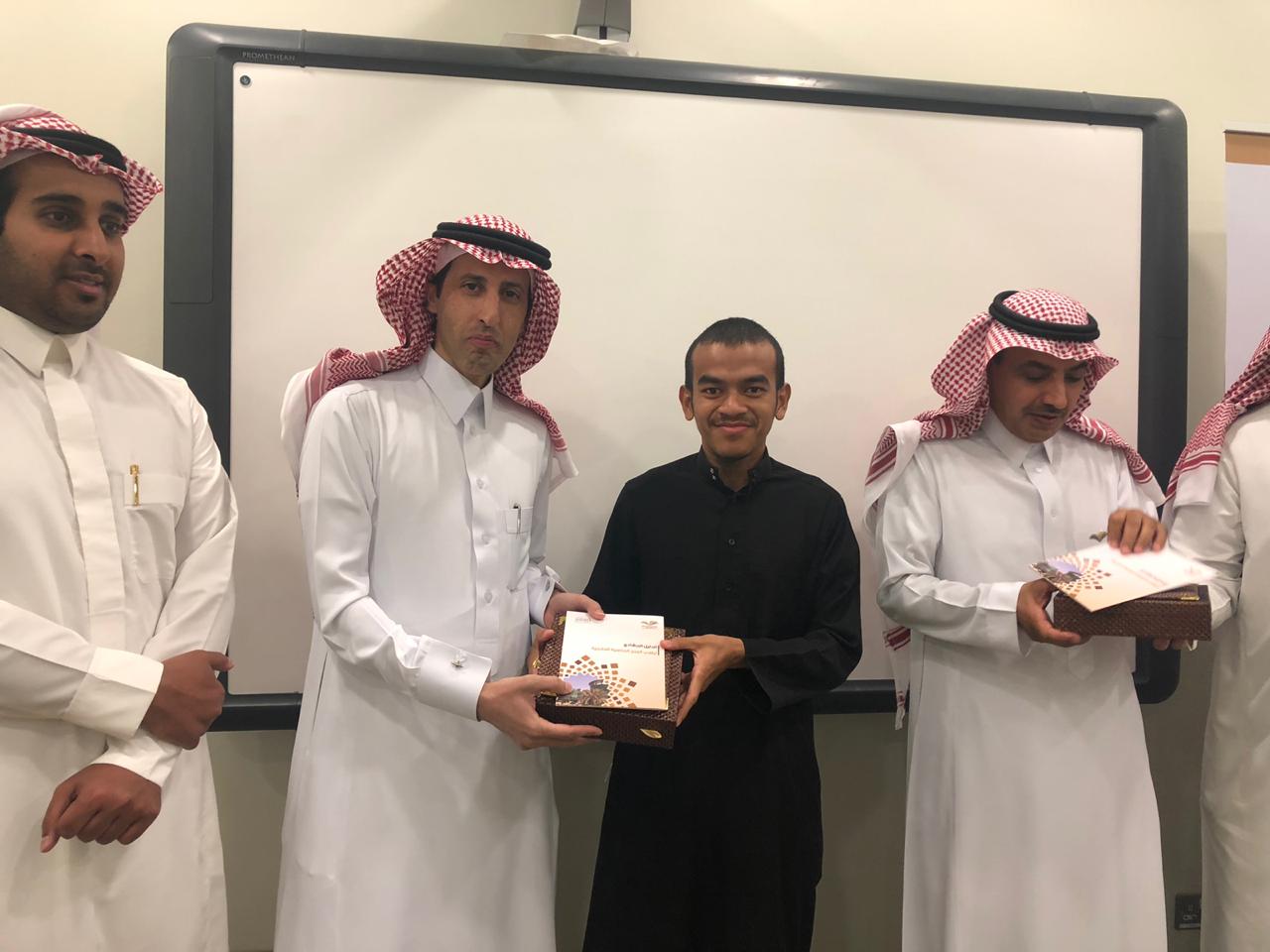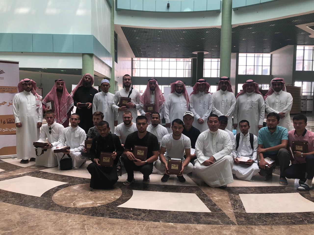وفي نهاية اللقاء قام سعادة عميد شؤون الطلاب الدكتور ثلاب الشكرة وأعضاء وحدة تعليم اللغة العربية لغير الناطقين بها بتقديم إهداءات لطلاب المنح المستجدين.