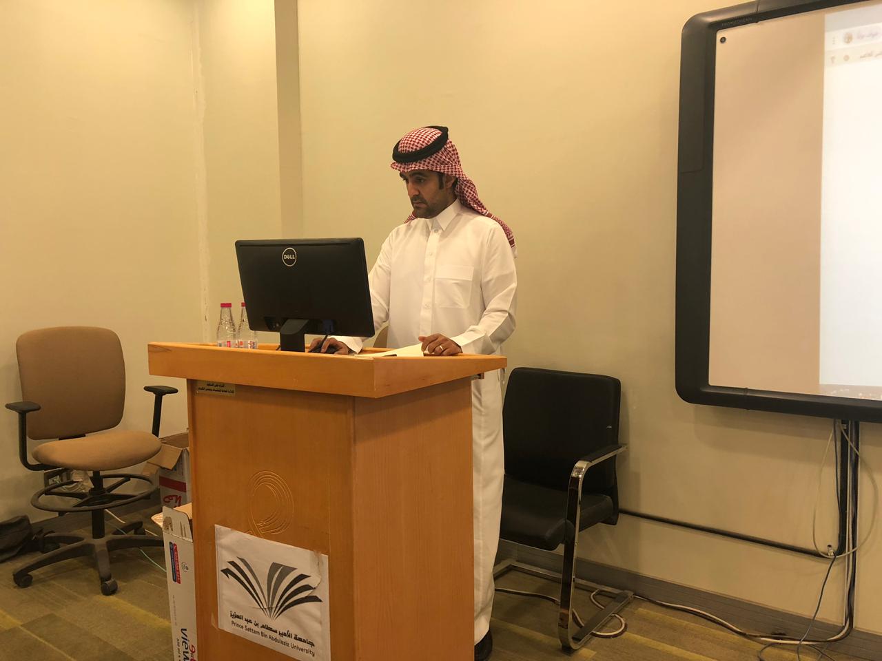 ومن ثم قدم وكيل عمادة القبول والتسجيل الدكتور هشام العبدالجبار عرضاً تعريفياً حول أنظمة ولوائح القبول والتسجيل بالجامعة.