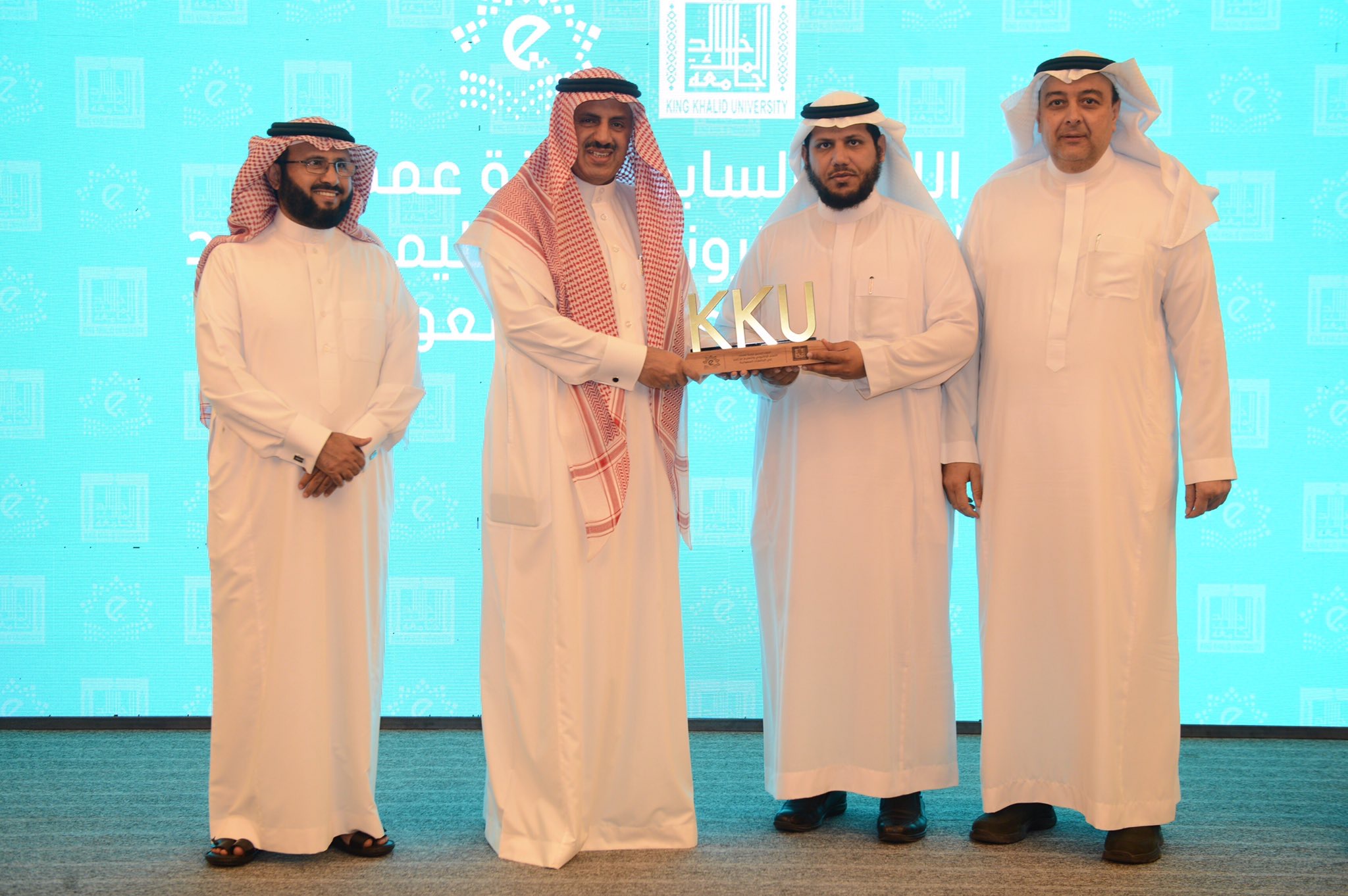 وفي نهاية اللقاء تشرفت عمادة تقنية المعلومات والتعليم عن بعد بتكريم من مدير الجامعة لمشاركتها في اللقاء الـ 7 بدرع تذكاري تسلمه سعادة الدكتور خالد النويصر.
