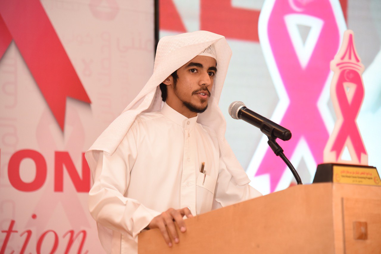 وفي الحفل المعد بهذه المناسبة ألقى المدير التنفيذي للمستشفى الجامعي د ناصر بن محمد الدوسري ، كلمة رحب في مستهلها بمعالي مدير الجامعة والحضور، مشير إلى أن الحملة تختلف عن غيرها من البرامج باستمراريتها طوال العام , وتهدف إلى أهمية الكشف المبكر عن مرض سرطان الثدي، الذي لا يتجاوز في مجمله ٣٠ دقيقة، ومن شأنه المساهمة في رفع نسبة الشفاء بإذن الله.