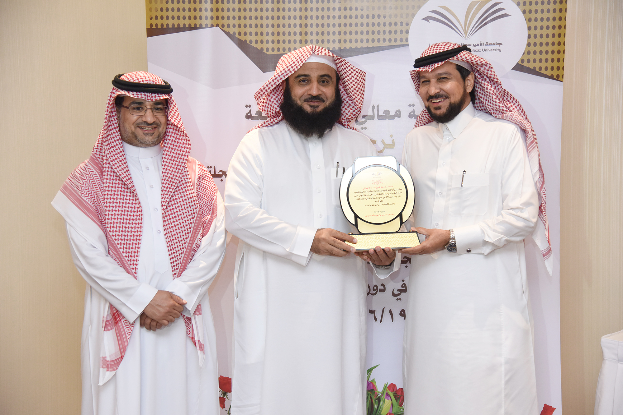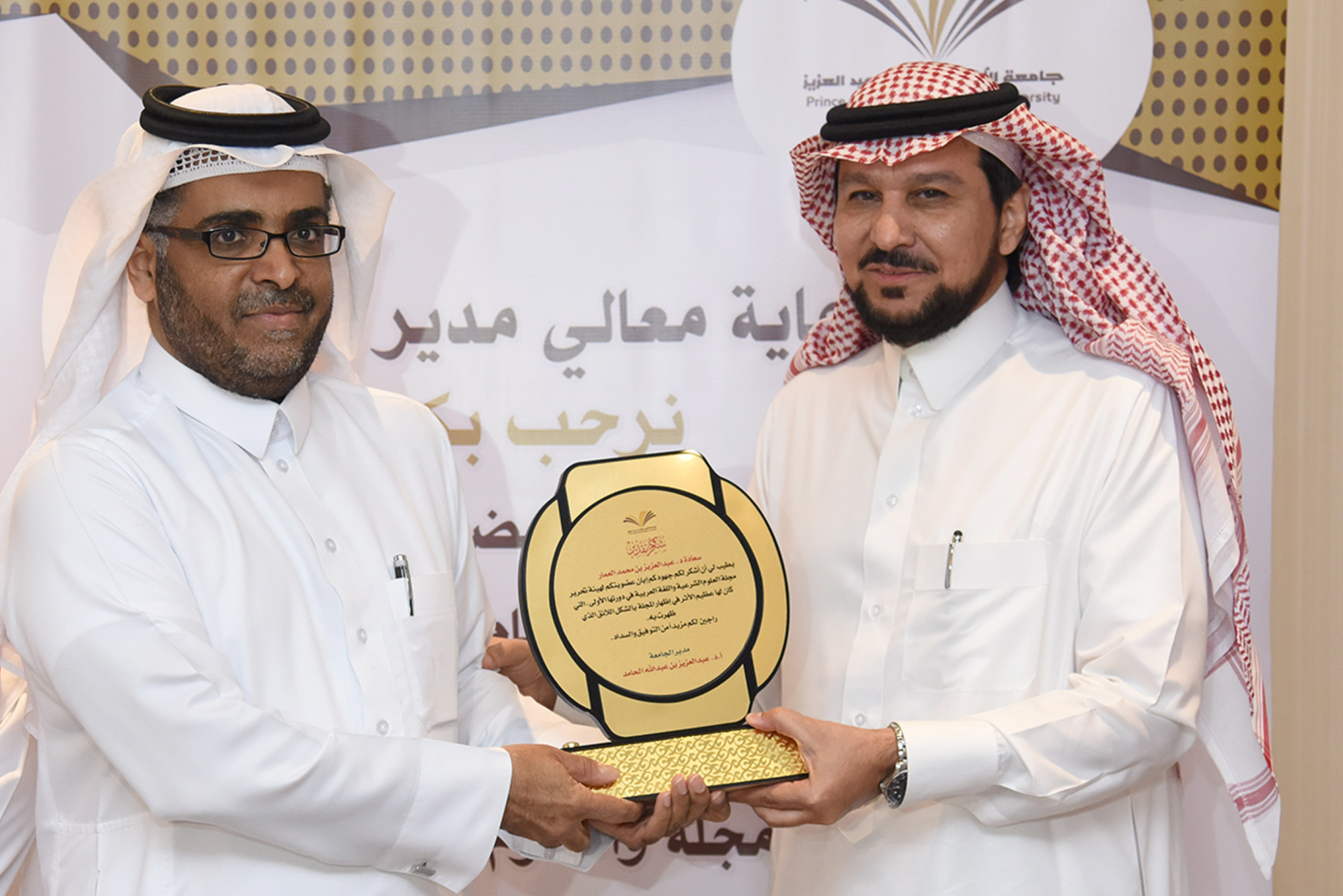 جاء ذلك خلال لقاء معاليه مع أعضاء هيئة تحرير مجلتي العلوم التربوية ومجلة العلوم الشرعية واللغة العربية في الجامعة. وخلال اللقاء أشار معالي مدير الجامعة إلى أهمية البحث العلمي وأن تسهم هاتين المجلتين في عكس صورة البحث العلمي داخل الجامعة. كما أشاد معالي مدير الجامعة بنظام المجلات والذي سيسهم في توحيد وتبسيط آليات وإجراءات فحص وتحكيم الأبحاث المرسلة للمجلات العلمية داخل الجامعة.