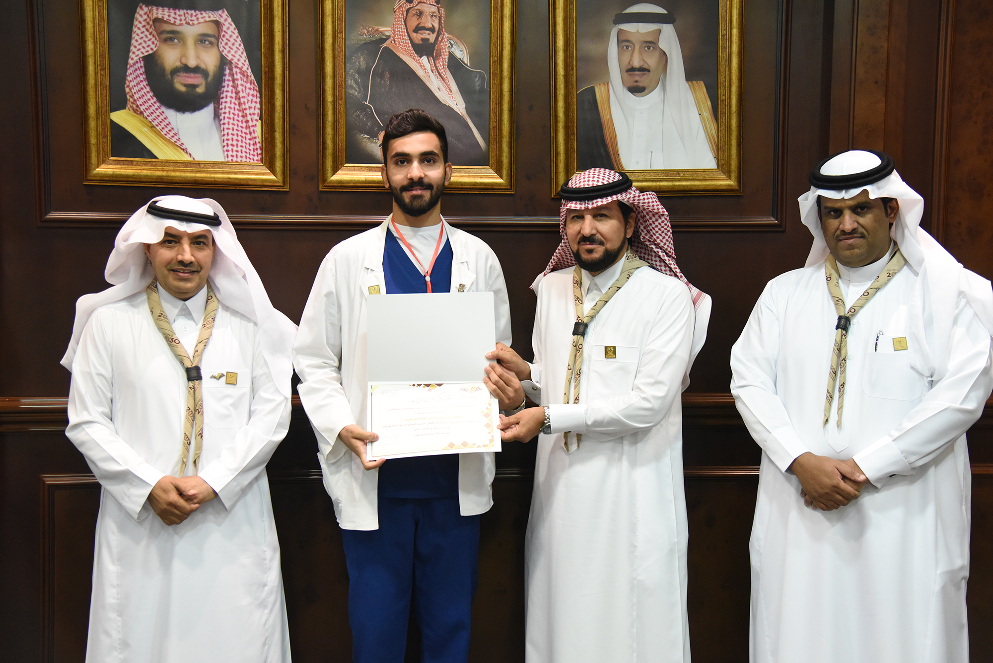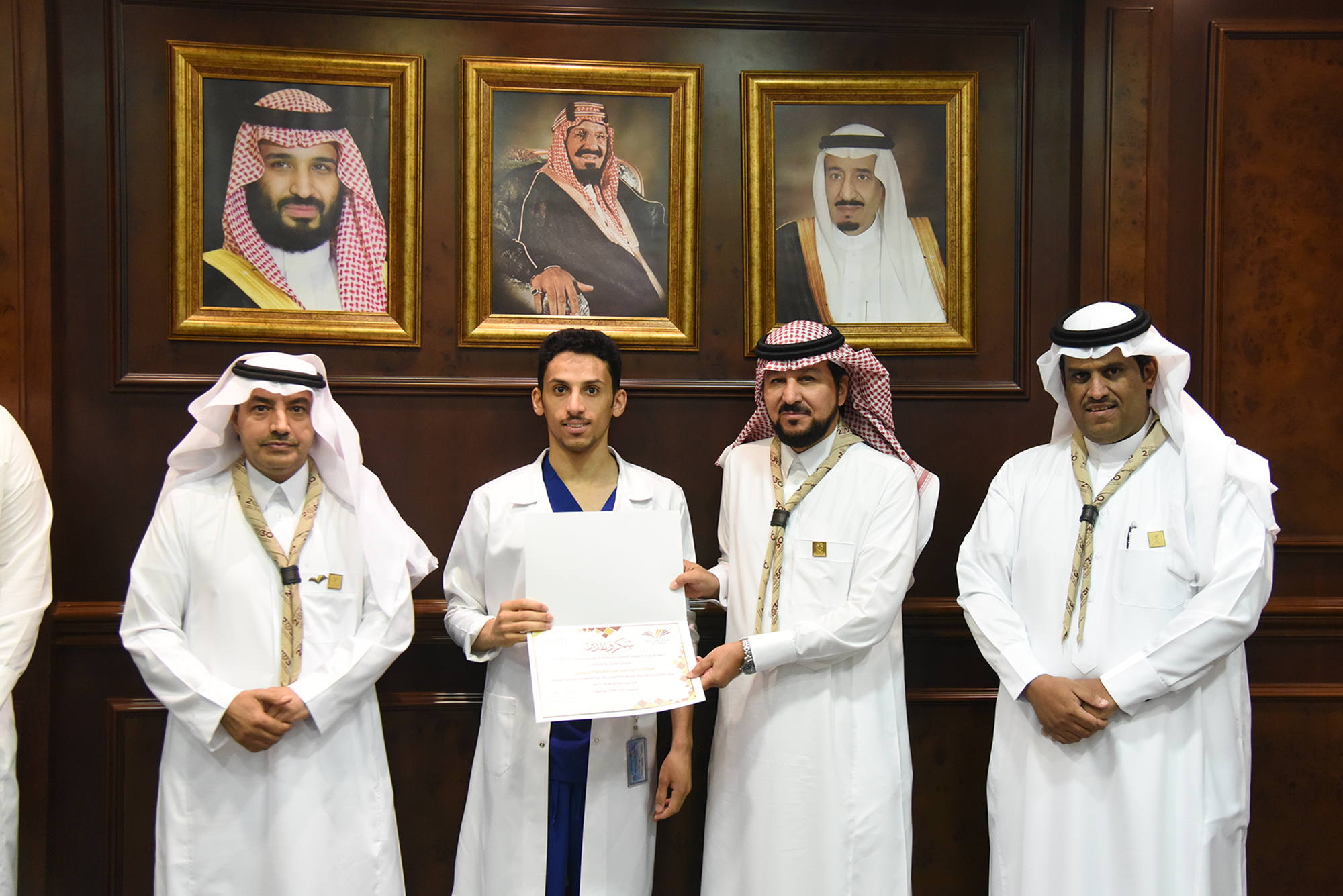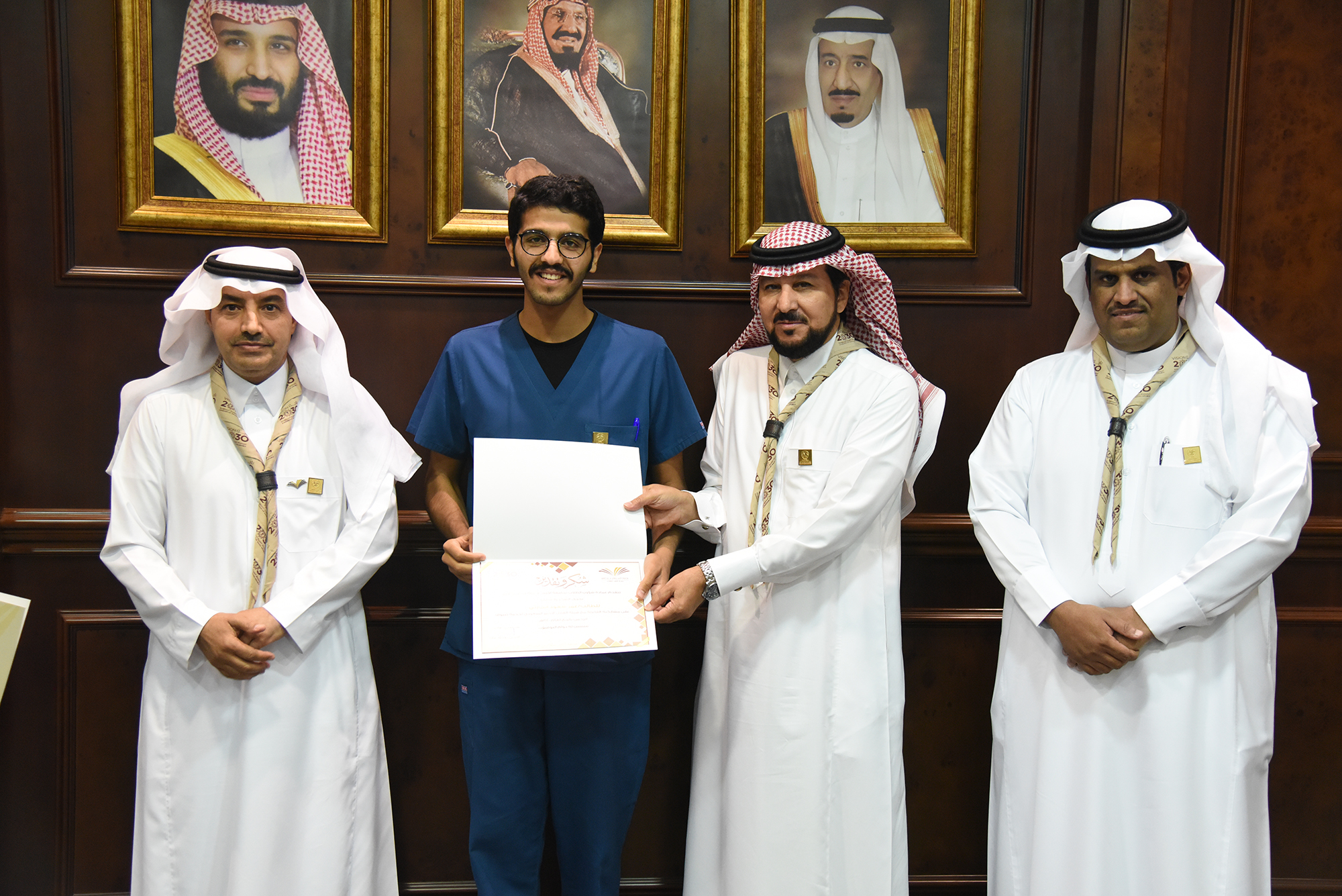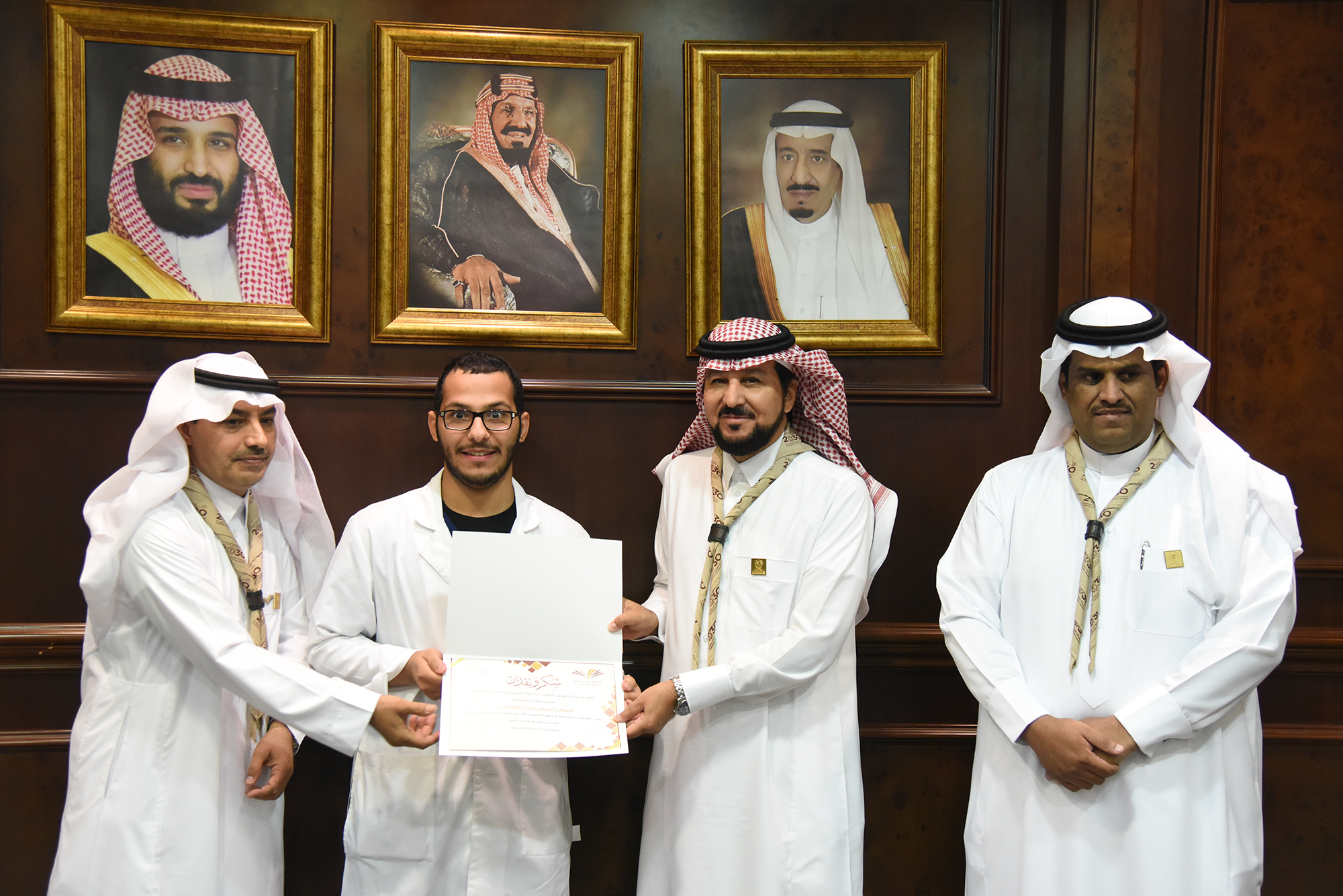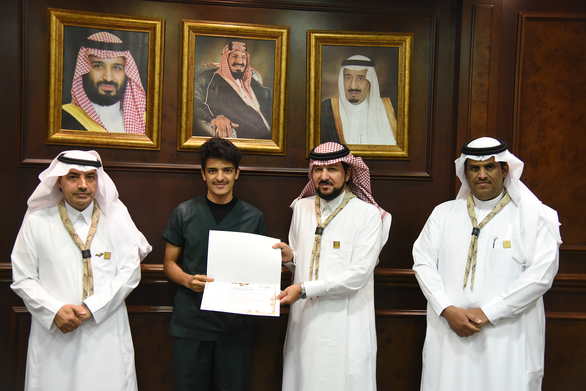 line-height:115%;font-family:"Traditional Arabic","serif";color:#333333" xml:lang="AR-SA">في نهايةاللقاء سلم معاليه شهادات الشكر للطلاب المشاركين من الجوالة وطلاب الكليات الصحية بالجامعة.