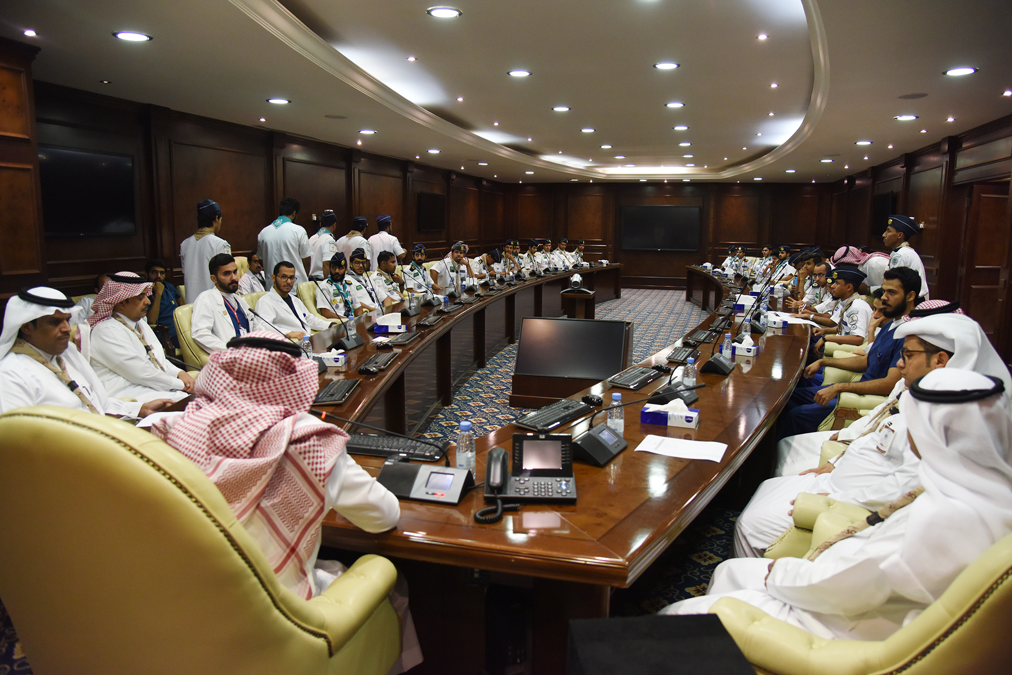 line-height:115%;font-family:"Traditional Arabic","serif";color:#333333" xml:lang="AR-SA">بدأ اللقاء بكلمة للطلاب المشاركينألقاها نيابة عنهم الطالب: إبراهيم القحطاني, ذكر فيها الجوائز والأوسمة التي حققتها جوالة الجامعة، وكيفية مساندتهم للجهات الخدمية المشاركة في حج هذا العام, واستعرض خلال الكلمة تقريرًا عن منجزات طلاب الكليات الصحية حول أعداد الحالات الإسعافية التي تم مباشرتها.