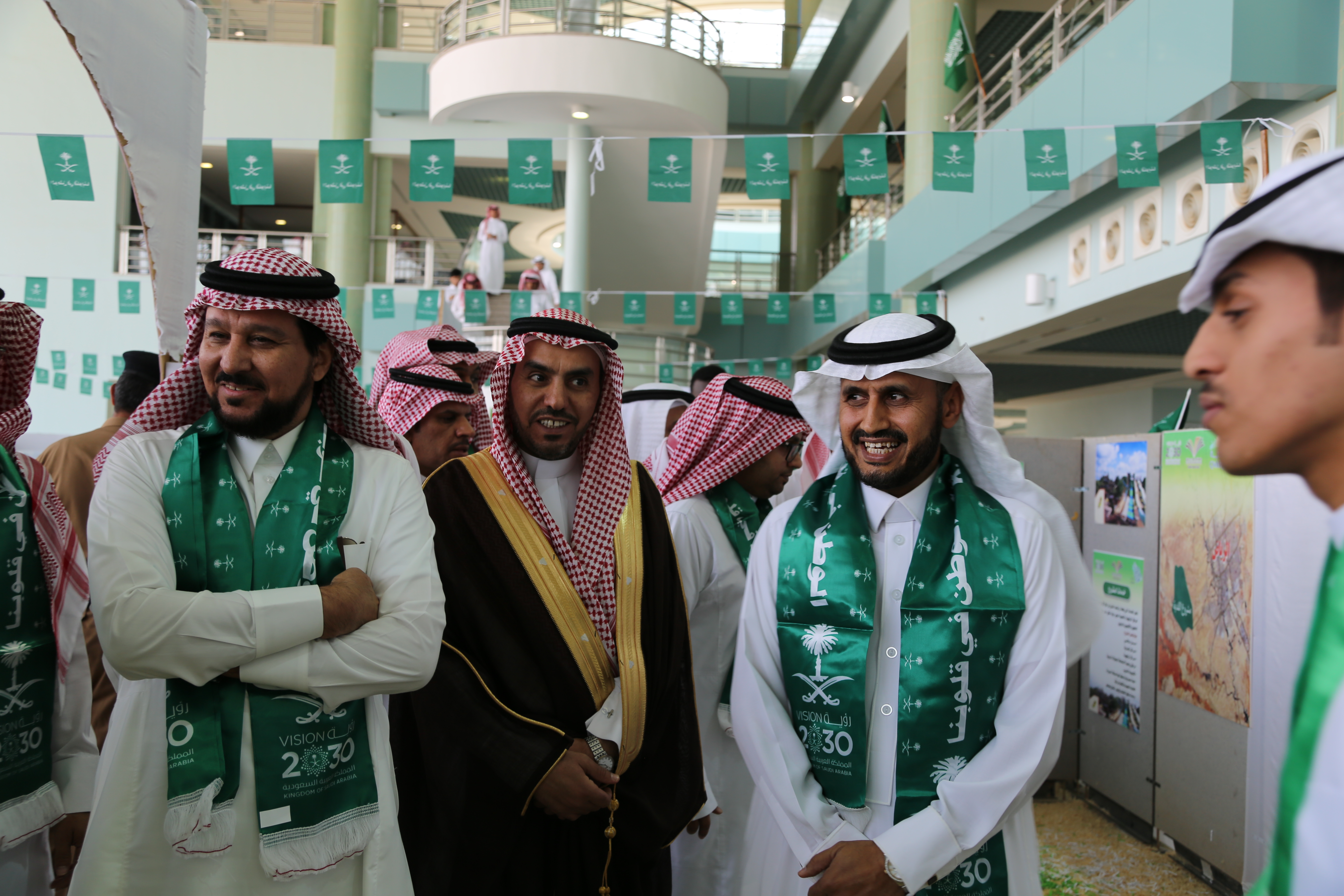 وشهد الحفل الذي حضره محافظ الأفلاج المكلف إبراهيم بن محمد المزروع ورعاه معالي مدير جامعة الأمير سطام بالخرج حضور عدد من مديري الجهات الحكومية المدنية والعسكرية بالمحافظة، وعددا كبيرا من الأهالي، ودشّن الدكتور الحامد المعرض المصاحب لتلك المناسبة وتجول الجميع داخل المعرض التي احتوت أركانه على أعمال الطلاب؛ إذ ضم المعرض ركنا عن مشروع نيوم، وركنا عن مشروع القدية، وركنا عن مشروع البحر الأحمر، عرض فيها رؤية المشروعات وأهدافها ومواقعها، ومساهمة تلك المشاريع في تحقيق رؤية المملكة 2030 عبر محاورها الثلاث "مجتمع حيوي، واقتصاد زاهر، ووطن طموح"، كذلك المكاسب الاقتصادية لتلك المشاريع، والخدمات التي تقدمها تلك المشاريع للوطن والمواطن، كما ضمت أركان المعرض العديد من أعمال الطلاب في مختلف المجالات الأخرى، وتناول الجميع بعض المأكولات الشعبية في مقر الضيافة "بيت الشعر"، الذي كان ضمن فعاليات الاحتفال.
