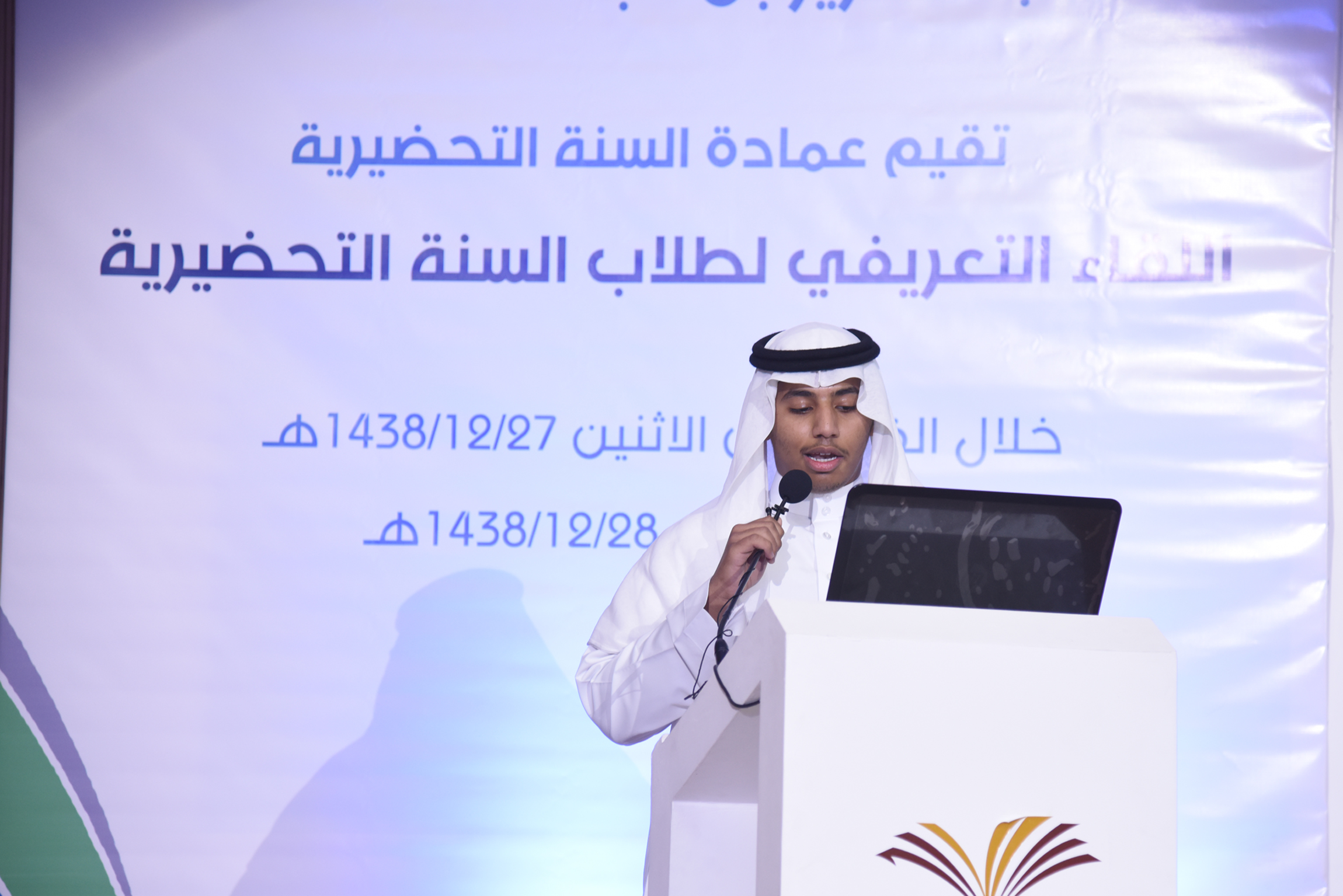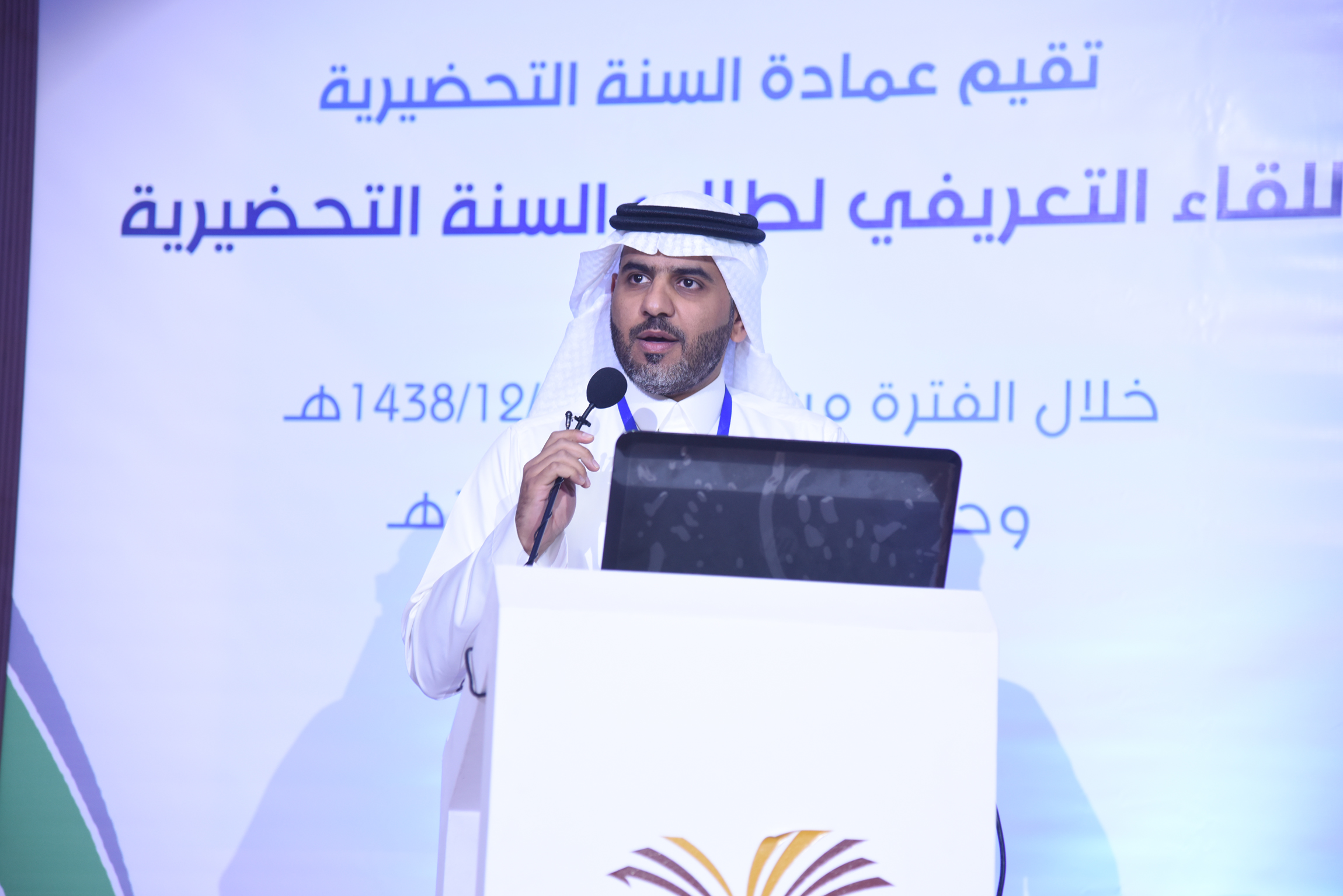 كما تحدث أيضًا الدكتور أحمد العليوي وكيل السنة التحضيرية عن العمادة رؤيتها ورسالتها وأهدافها، والعديد من الأمور التي يجب على الطالب معرفتها في مستهل دراسته في السنة التحضيرية.