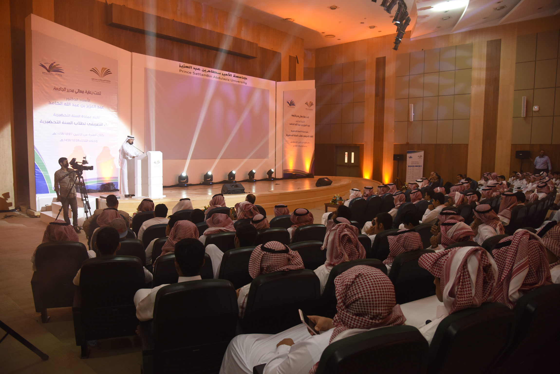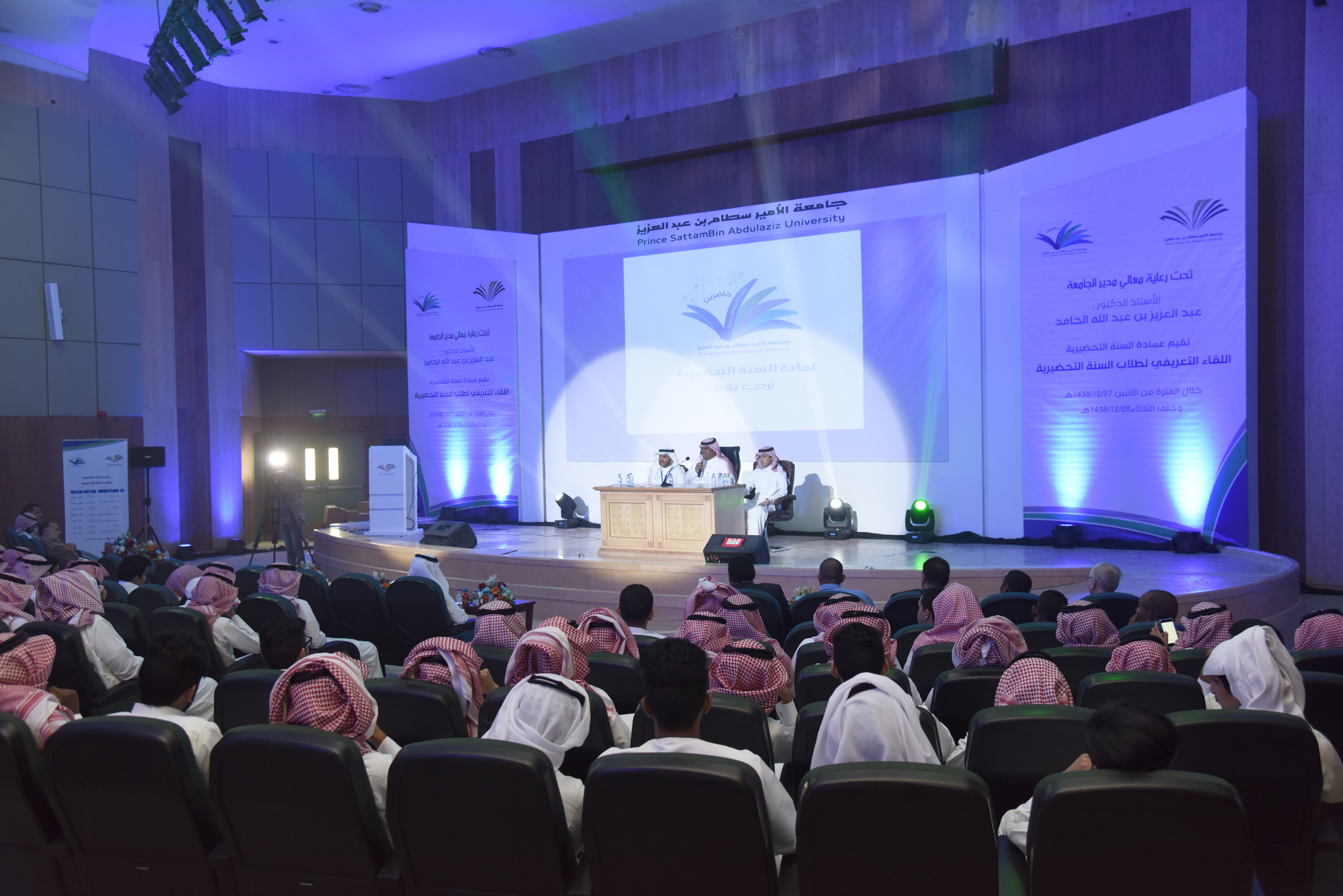 رعى معالي مدير جامعة الأمير سطّام بن عبدالعزيز الأستاذ الدكتور عبد العزيز بن عبد الله الحامد انطلاق اللقاء التعريفي لطلاب السنة التحضيرية المقبولين للعام الجامعي 1438هـ- 1439هـ، الذي نظمته عمادة السنة التحضيرية لجميع المسارات، صباح اليوم الاثنين 27/11/1438هـ، ويستمر حتى الثلاثاء 28/11/1438هـ في مسرح المدينة الجامعية بحضور وكيل الجامعة للشؤون التعليمية والأكاديمية الدكتور عبدالرحمن الخضيري وعميد عمادة السنة التحضيرية الدكتور مشاري العصيمي، ووكلاء العمادة.